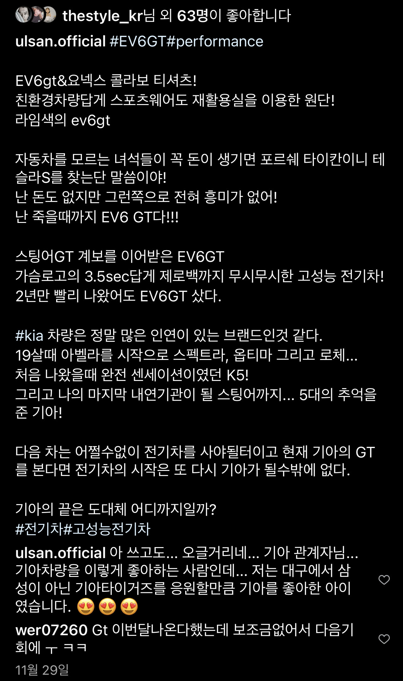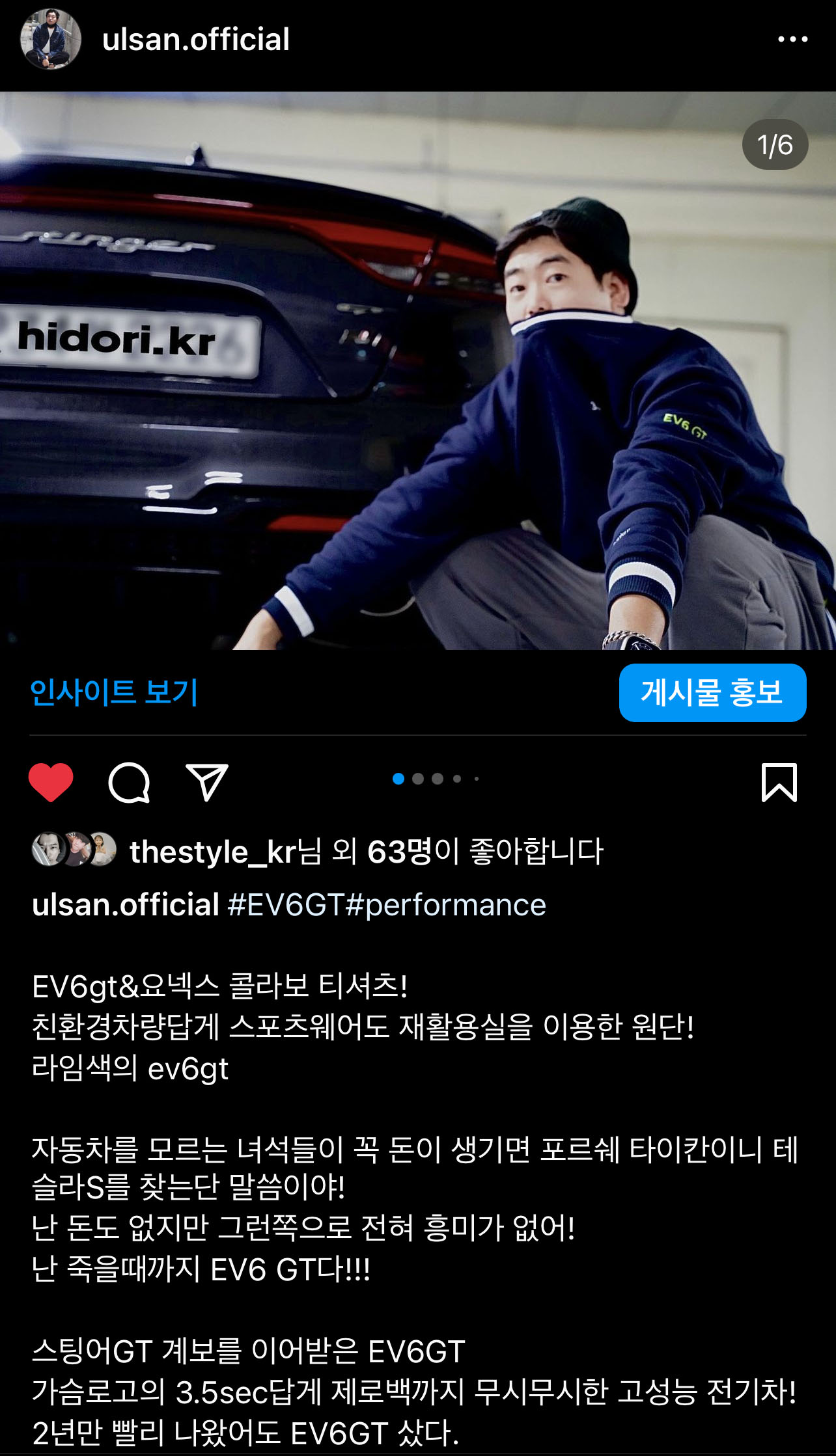 인스타에 해시태그 #EV6 GT #퍼포먼스