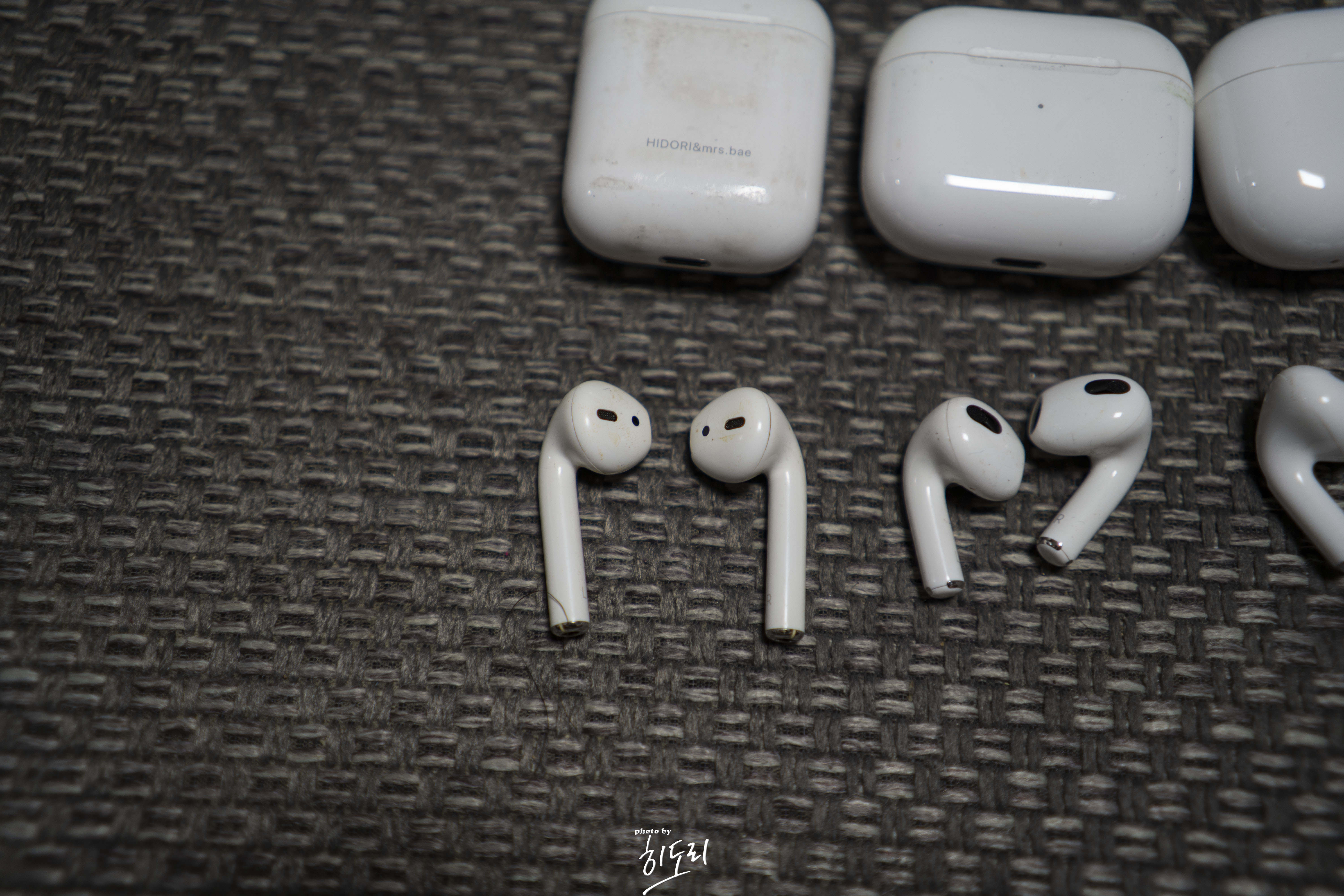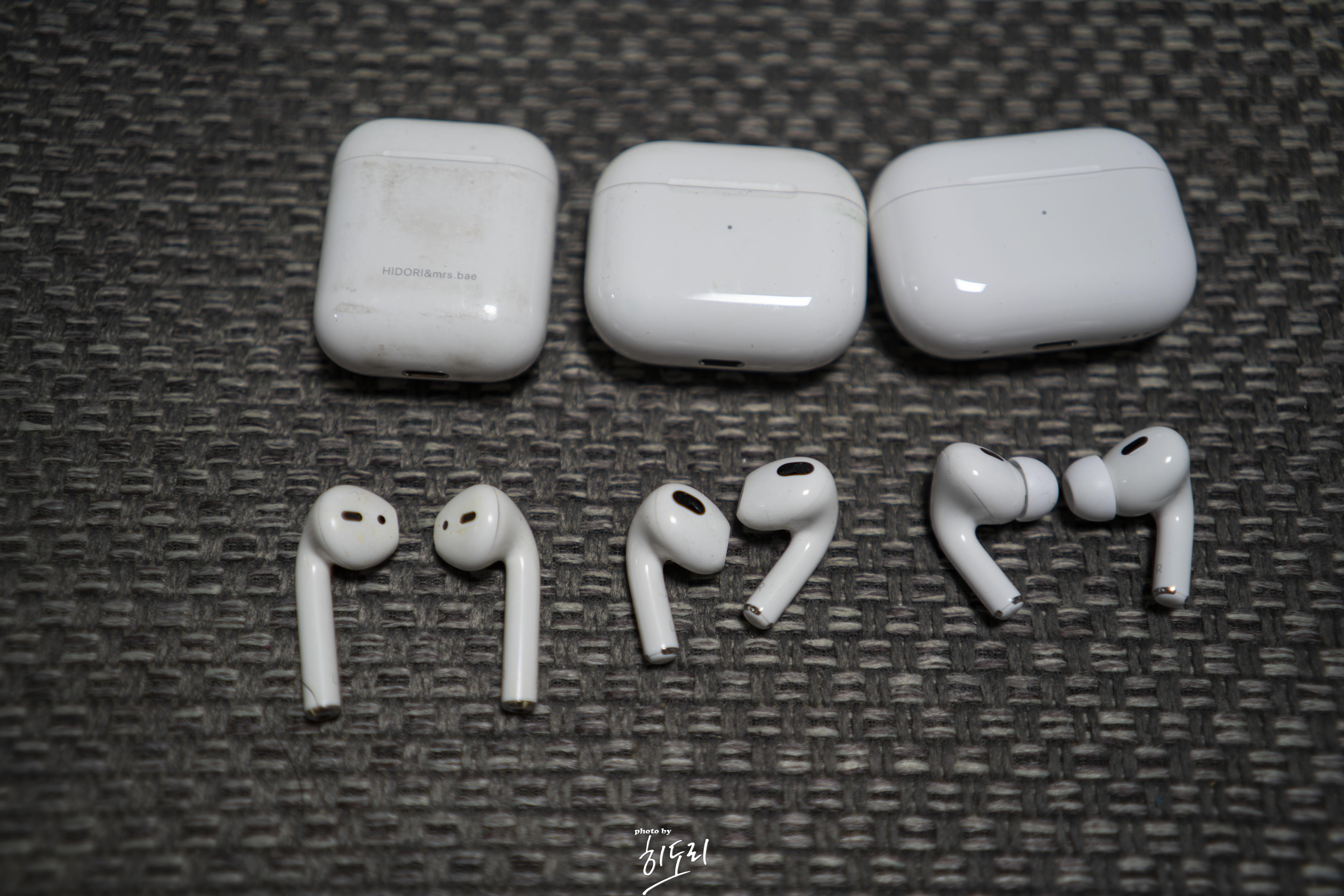 왼쪽순으로 에어팟1-에어팟3-에어팟 프로2