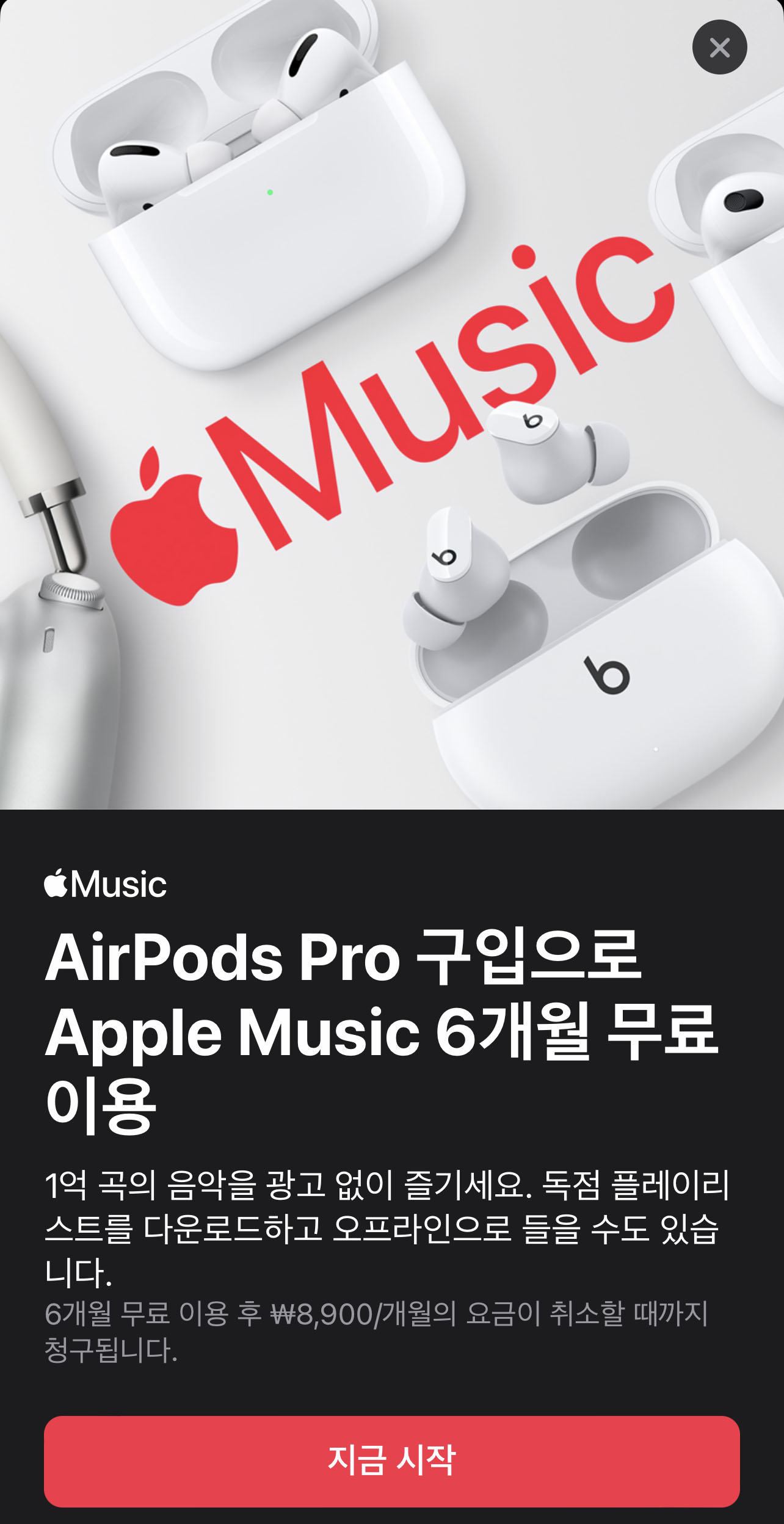 에어팟 프로2을 구입하면 애플뮤직 6개월 무료이용도 가능합니다.