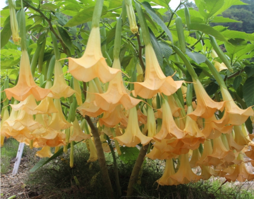 실제꽃들을 보시면 진짜 땅을 보는 노란색 천사의나팔꽃