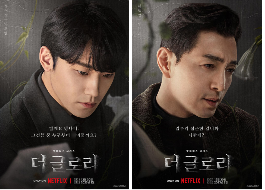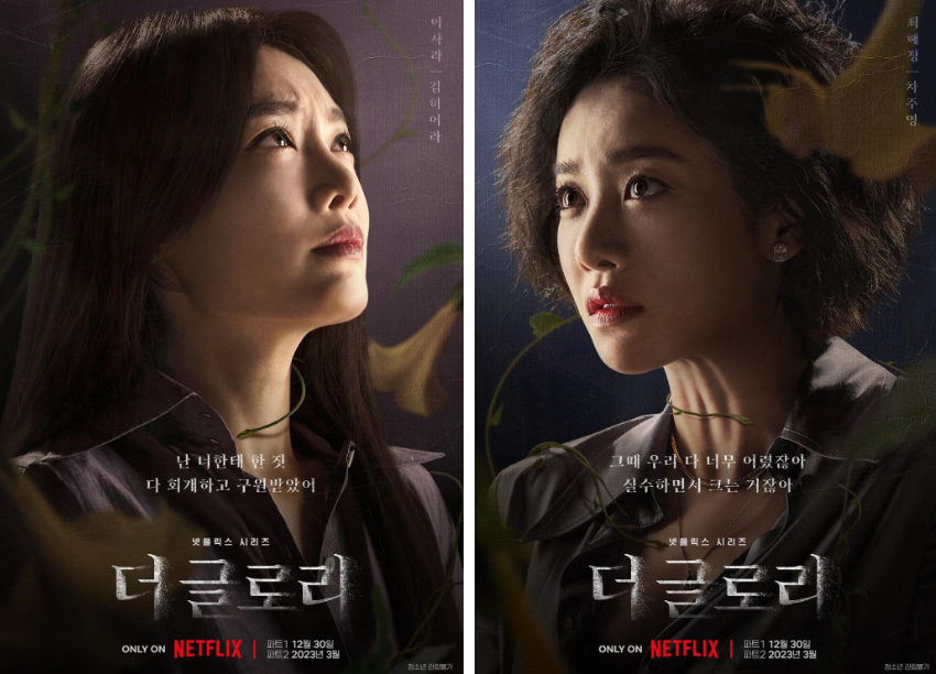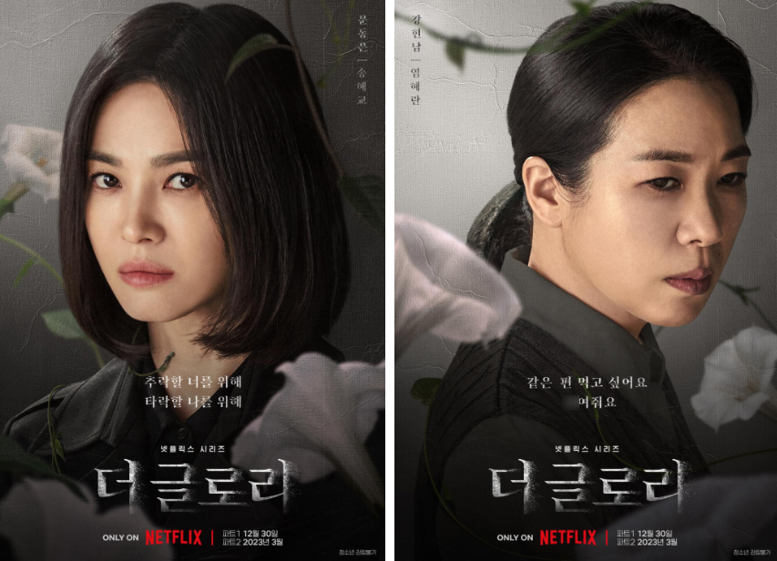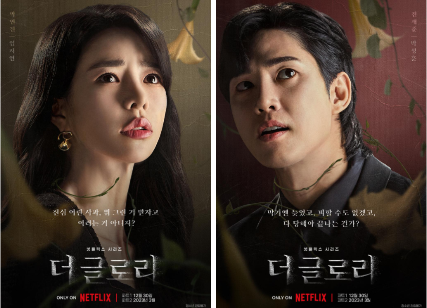 더글로리 포스트를 보시면 송혜교편에 있는 쪽과 임지연편쪽에 있는 나팔꽃의 색깔이 틀립니다.