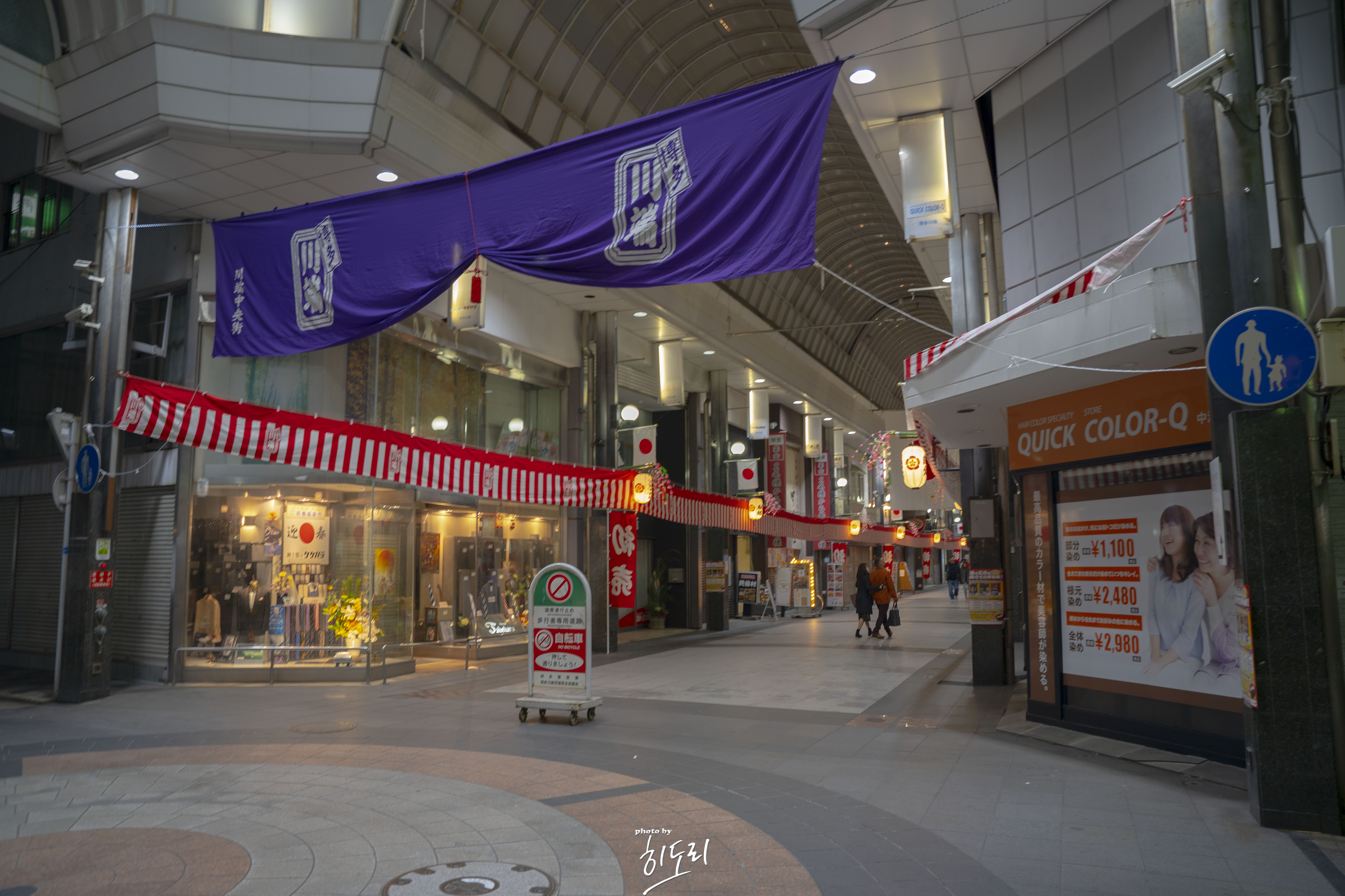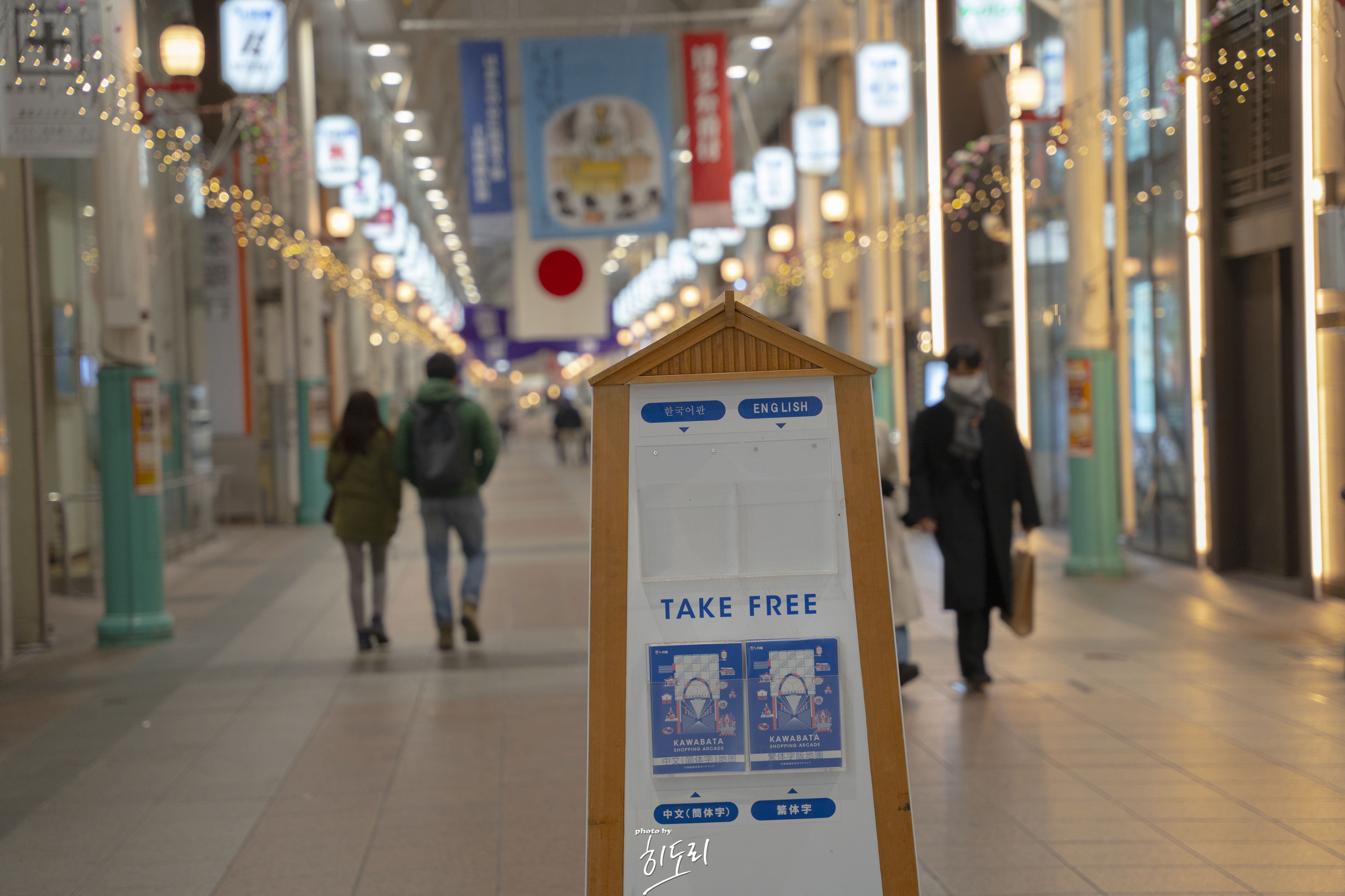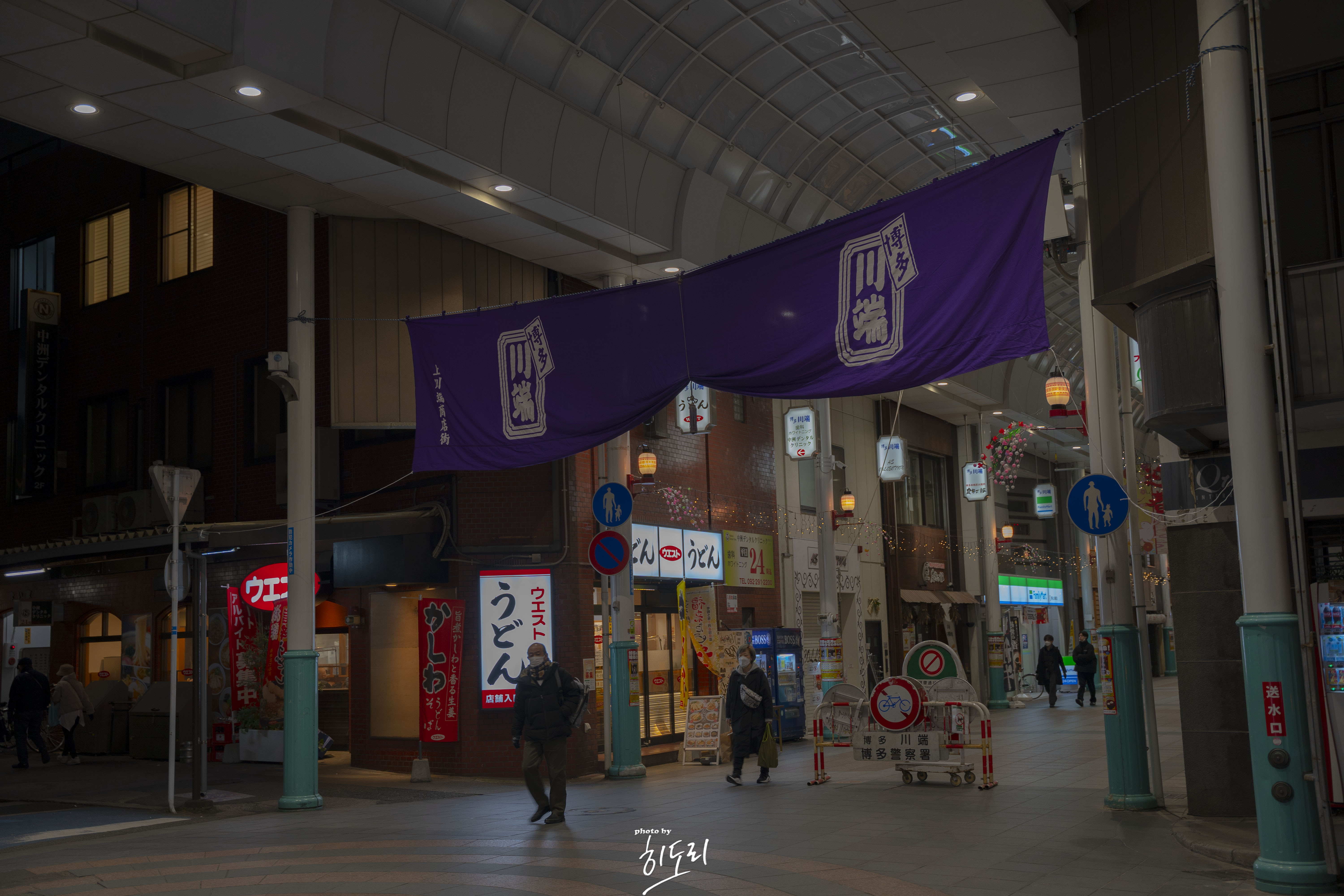 가와바타 상점가는 마치 성남동의 젊음의거리와 같이 400미터에 걸쳐 아케이드로 만들어진 옛 중심가의 모습입니다.