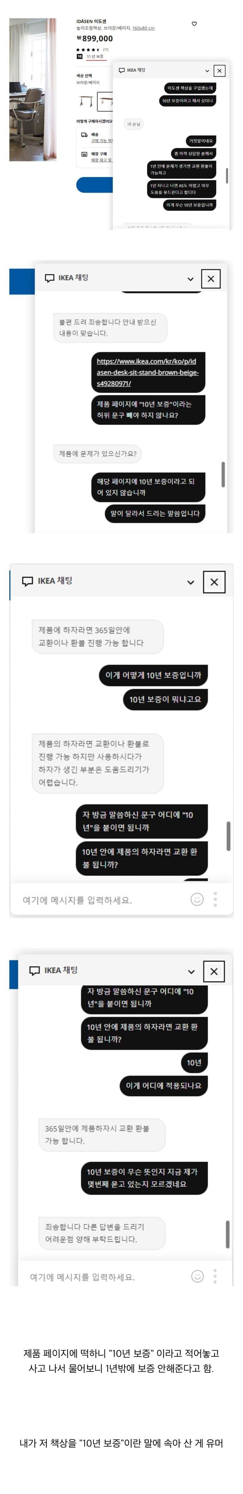 이책상은 상풍 설명에 10년 보증이라는 문구가 적혀져 있습니다.