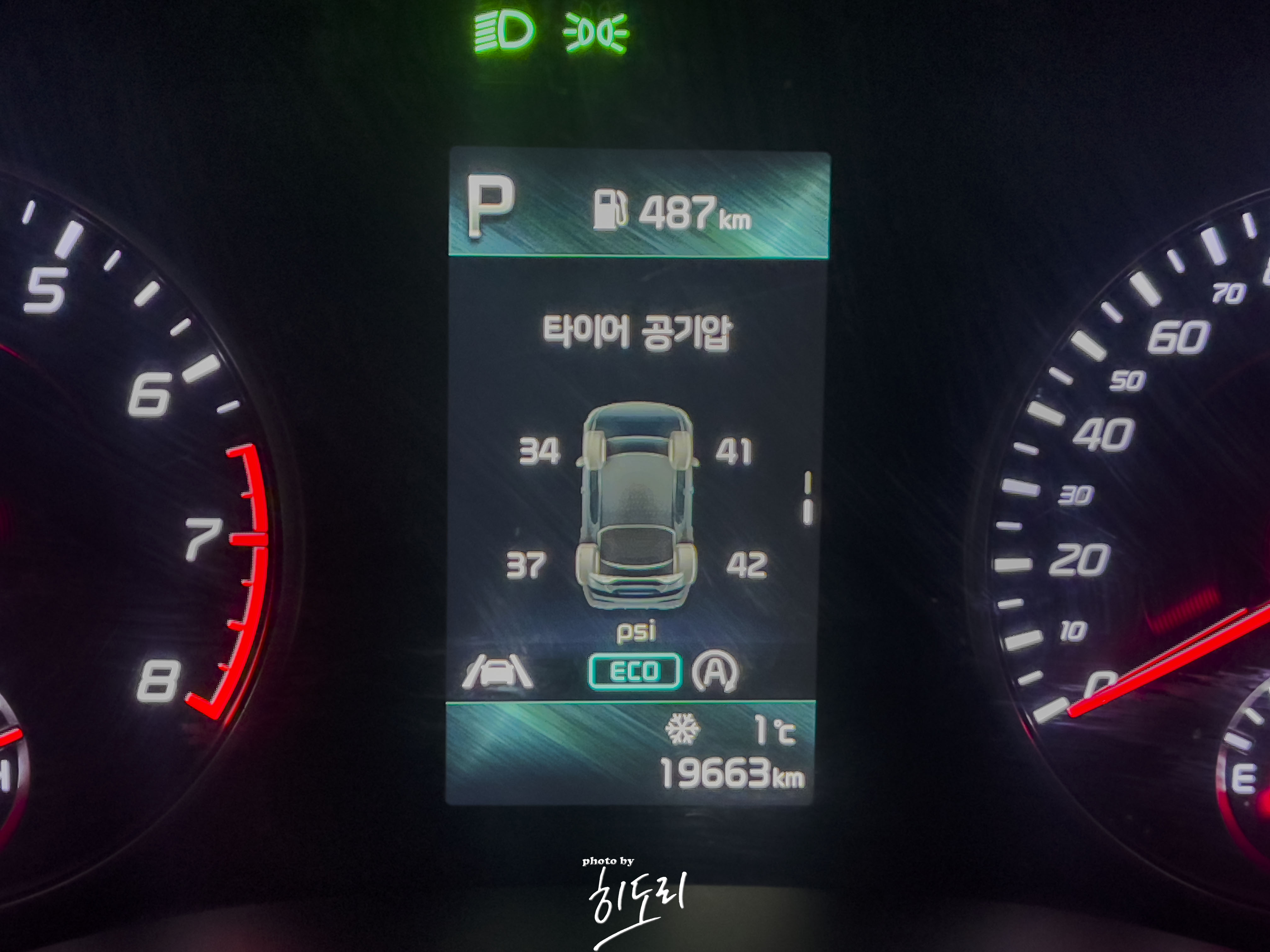 오래된 차량에는 볼수가 없지만 TPMS가 장착된 차량이라면 계기판에서 확인을 할수가 있죠.