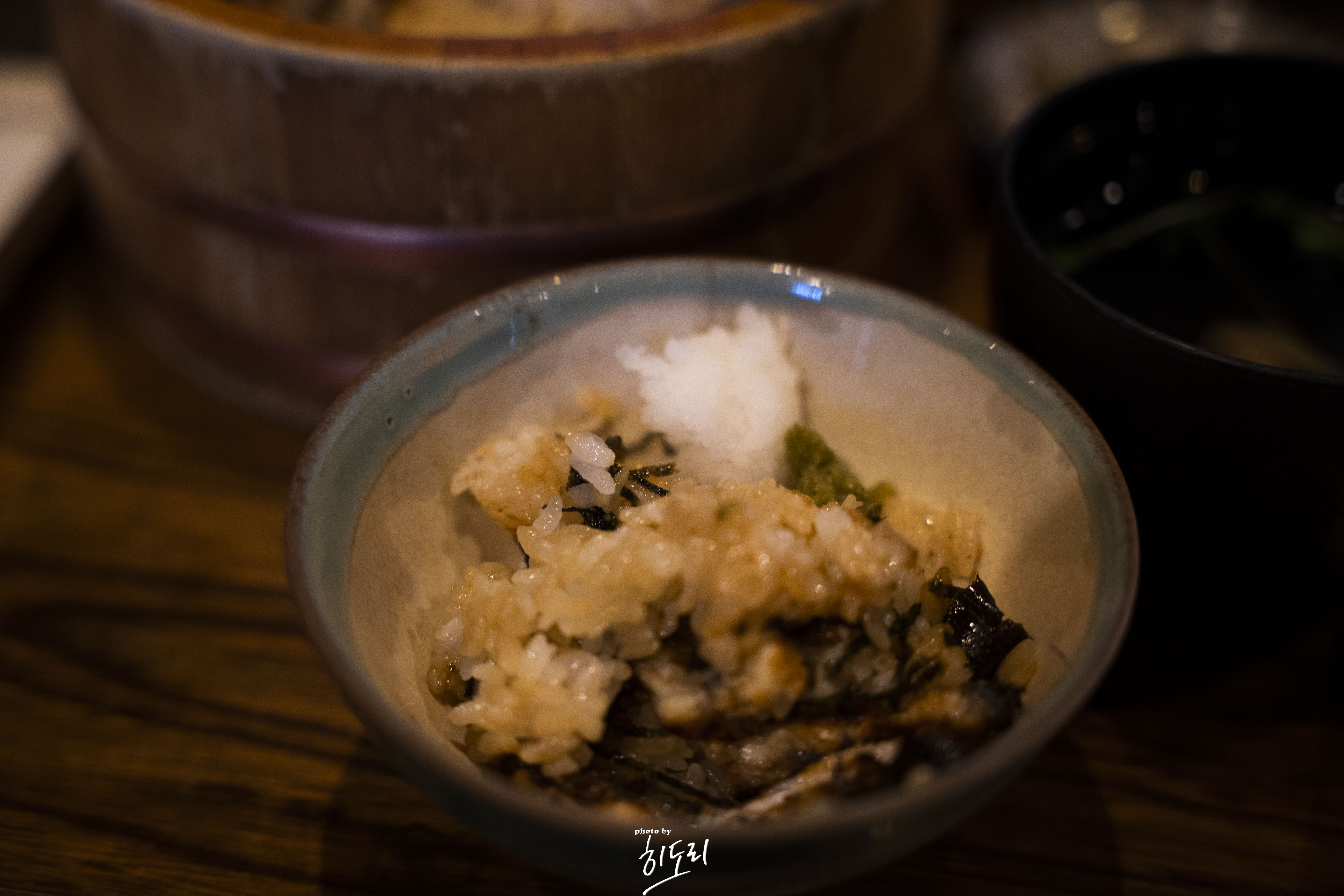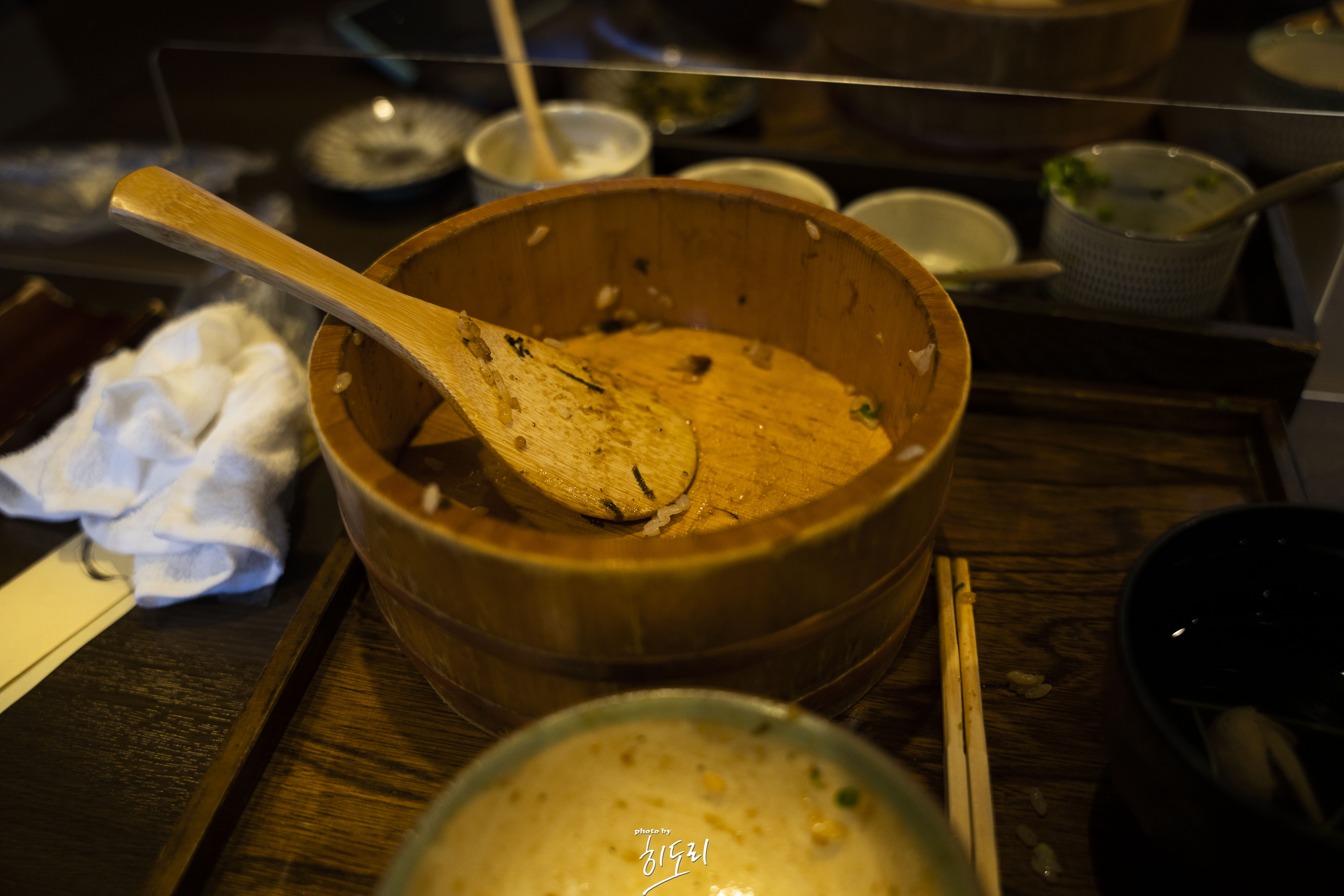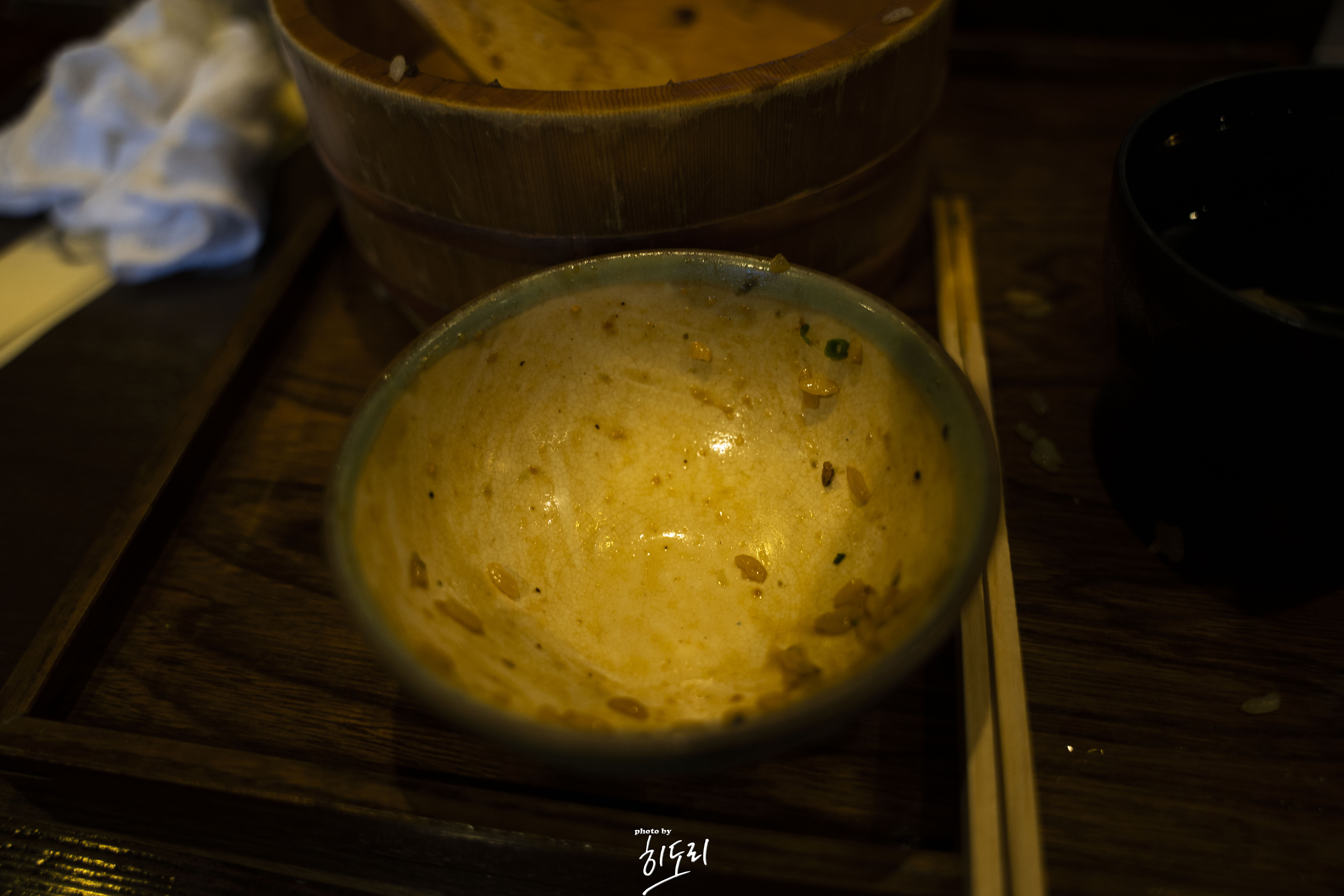 개인적으로 와사비와 간장소스를 넣고 육수를 살짝 넣어 촉촉하게 먹는 방법을 추천드립니다.