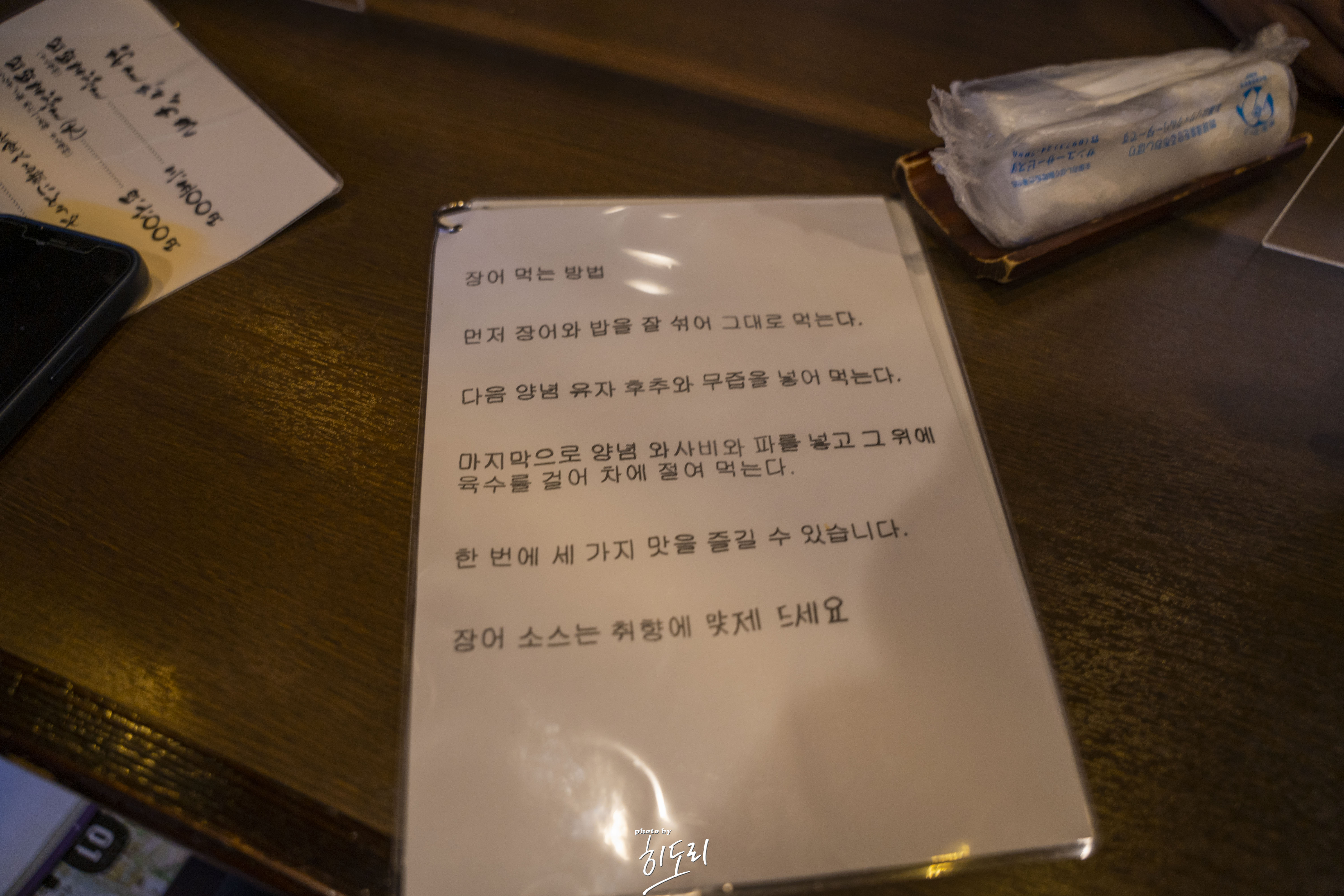 장어덮밥을 먹는 방법도 이상한 번역기로 돌려서 안내를 해주는데~