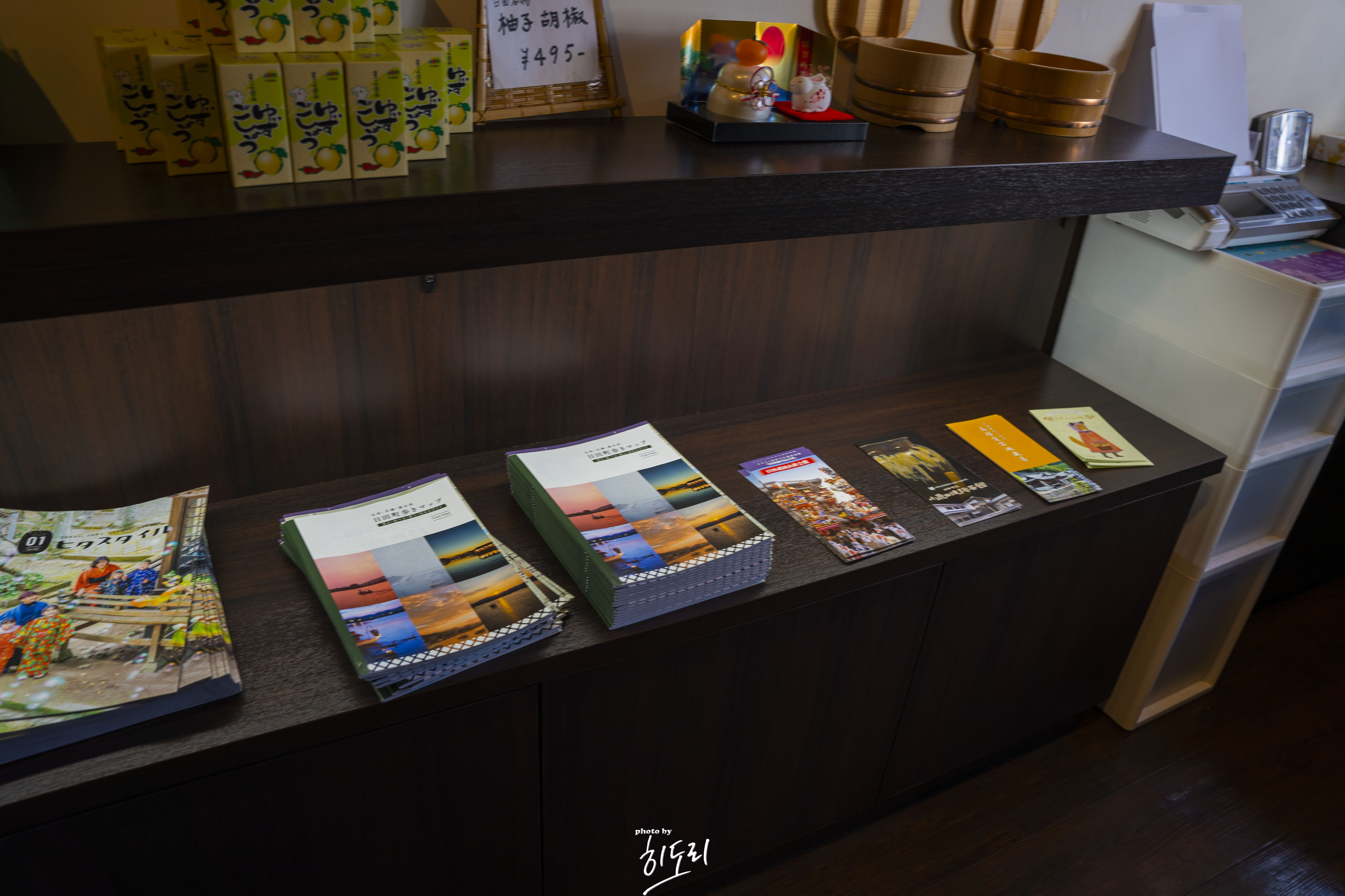 가이드북부터 마메다마치 관련 책자가 있으며 전통마을 답게 건물도 오래되었지만 관리도 깨끗한 식당의 모습이었습니다.