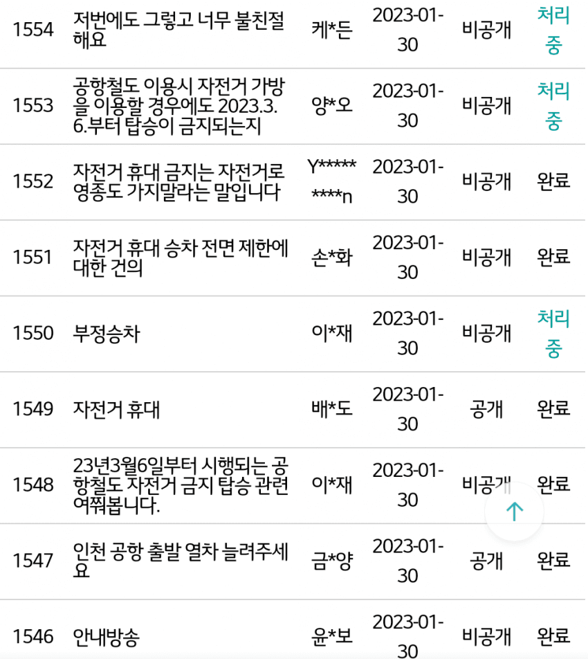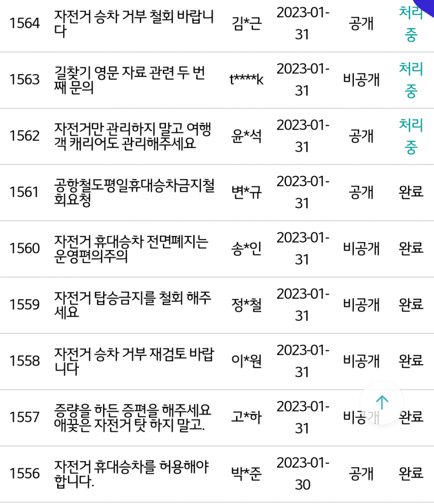 발표되자마자 자전거 타는 사람들은 공항철도 홈페이지에 당장 철회하라고 글을 쓰고 있습니다.