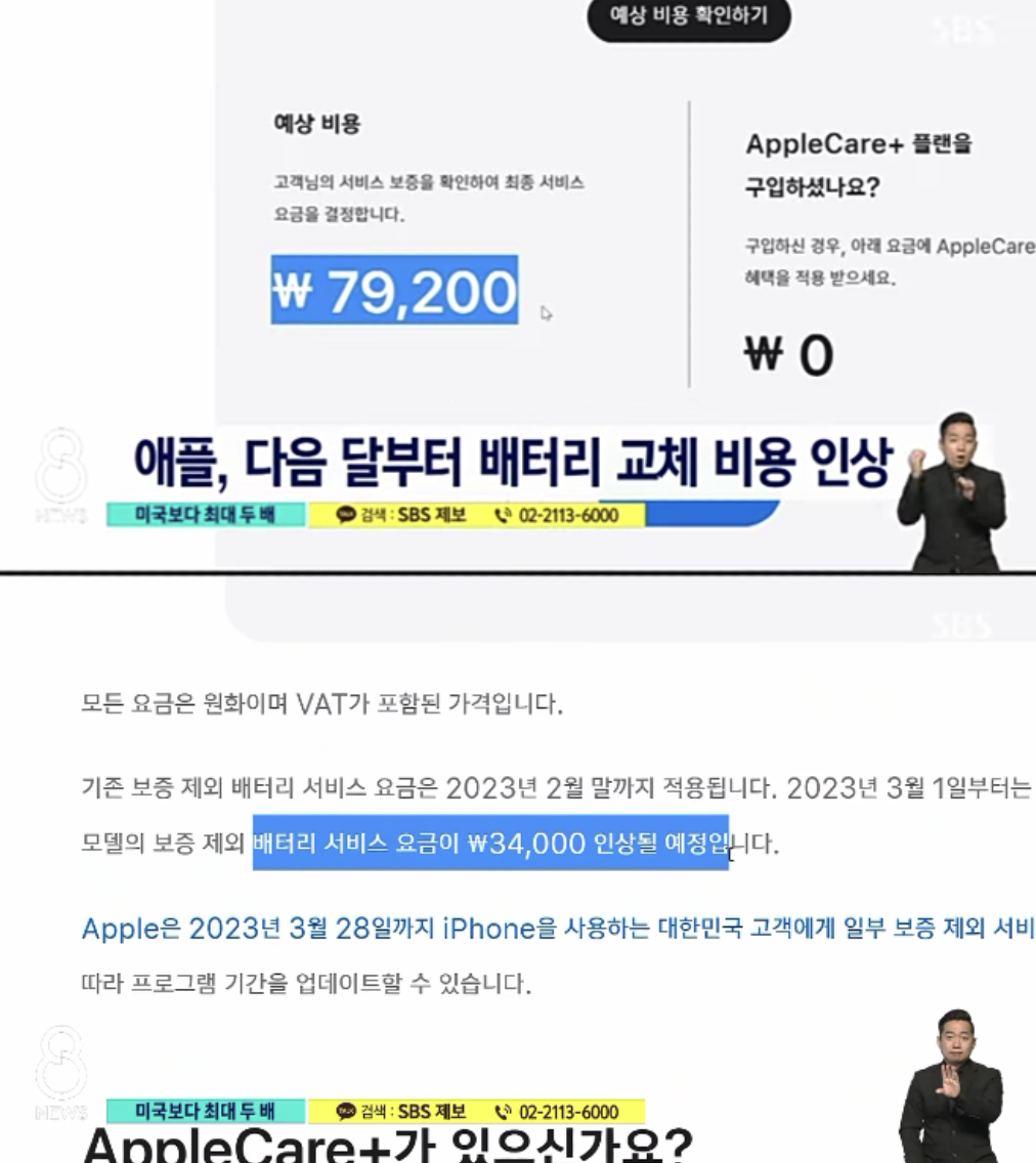 아이폰13 기준으로 79200원으로 배터리교체가 가능했었는데 3월부터 113200원으로 인상이 됩니다.