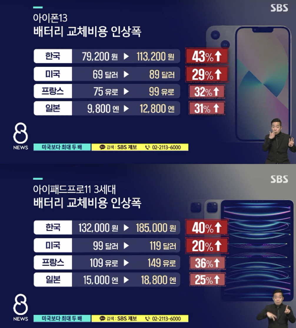 애플이 다음 달부터 배터리 교체 비용을 올립니다.