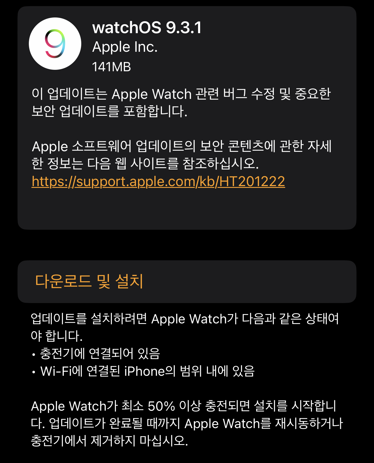 그리고 watch OS 9.3.1도 공개가 되었습니다.