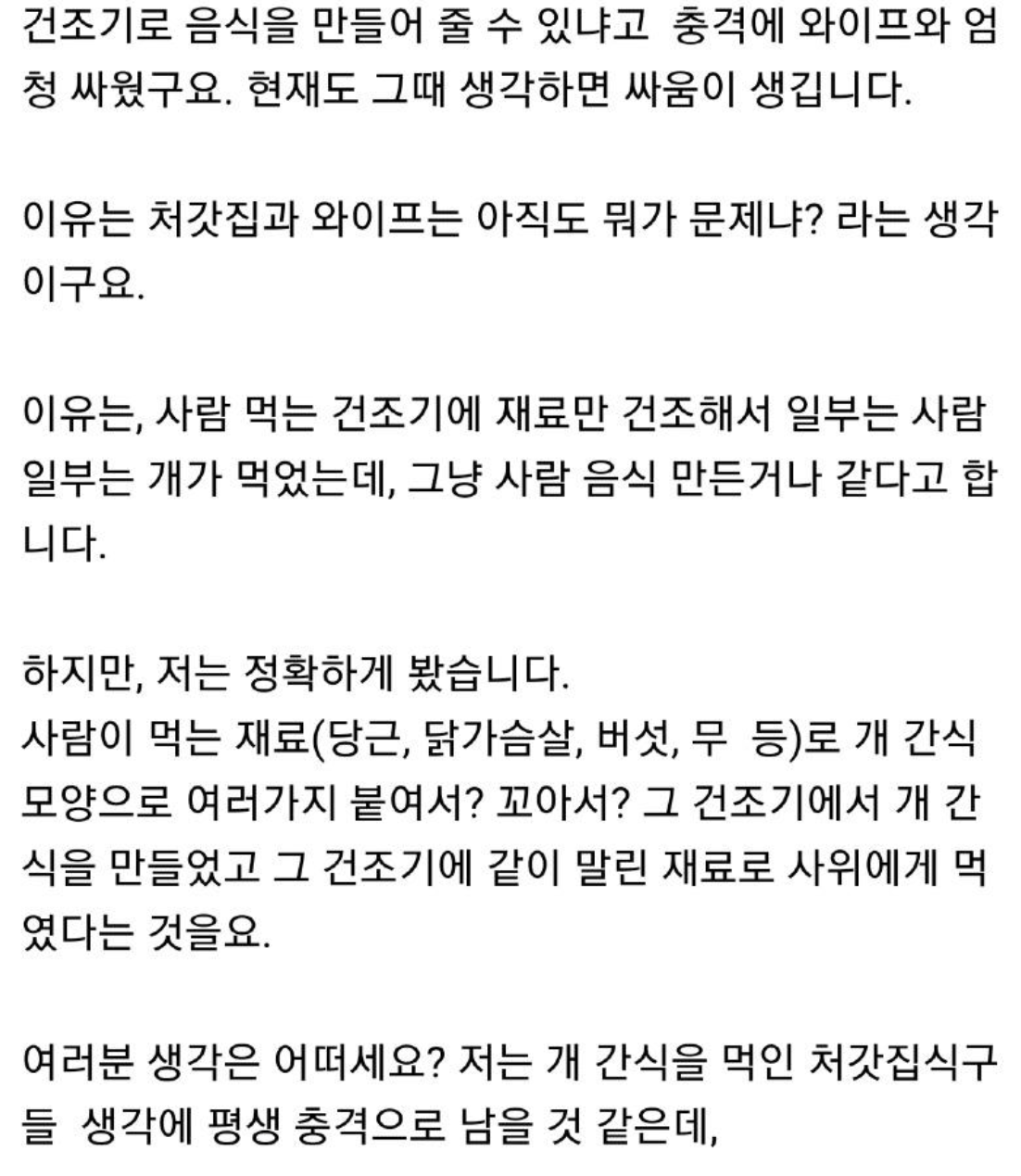 장모가 건조기에 반려견 간식과 사람이 먹는 음식을 함께 말려요!