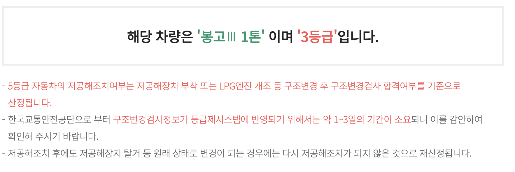 윗링크에 접속하셔서 차량번호를 기입하시면 몇등급인지 확인할수 있습니다.
