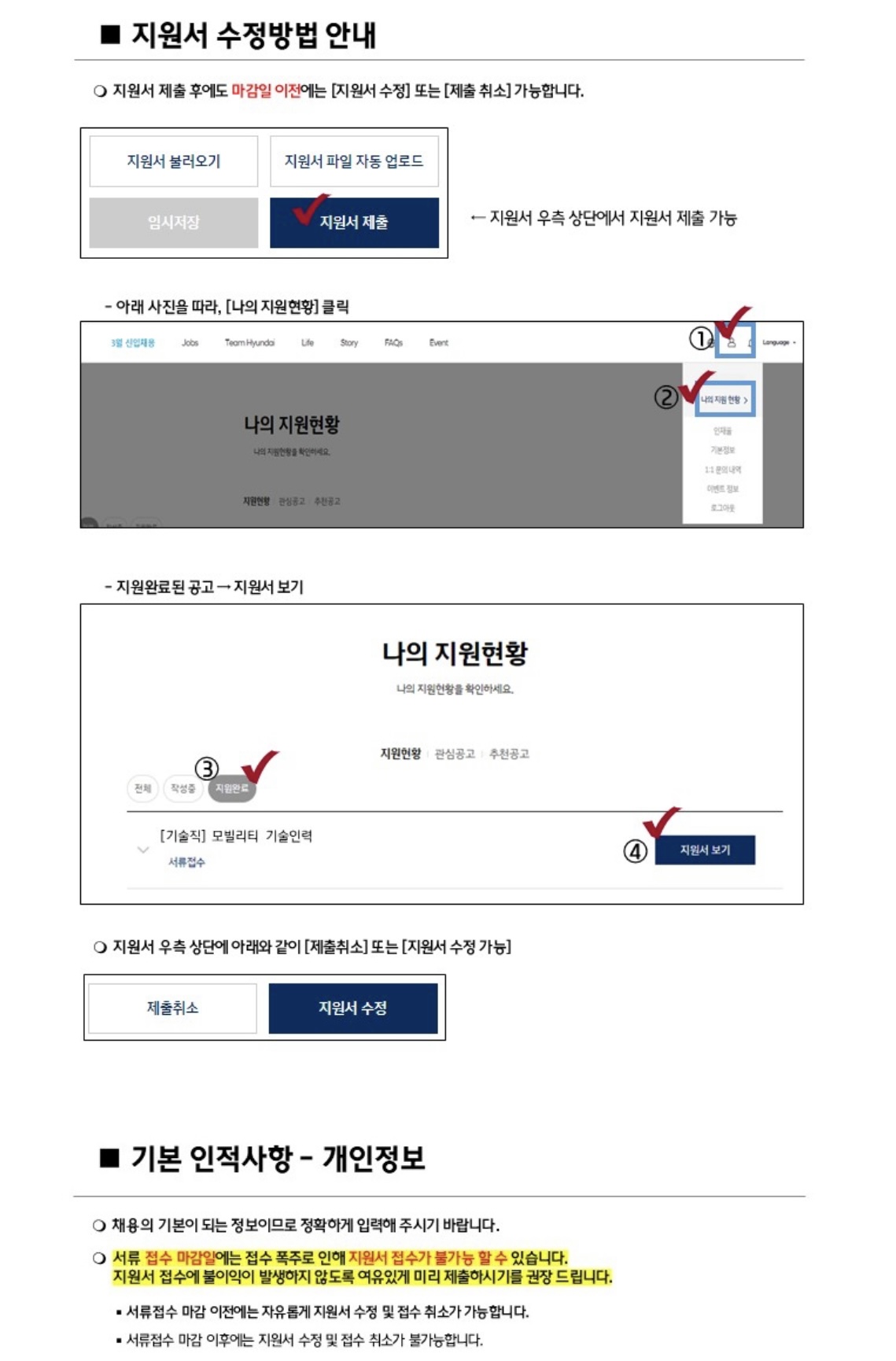 - 지원서 접수 마감 전까지 지원자 본인이 수정 및 접수 취소 가능합니다.