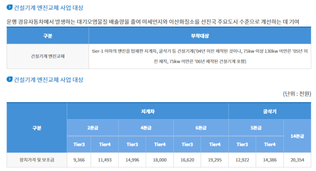 일반적인 RV차량보다 5등급 대형차량이나 건설기계들이 더 많은 미세먼지를 많이 배출하게 되는데 오염물질을 줄이기 위한 엔진의 교체를 지원하는