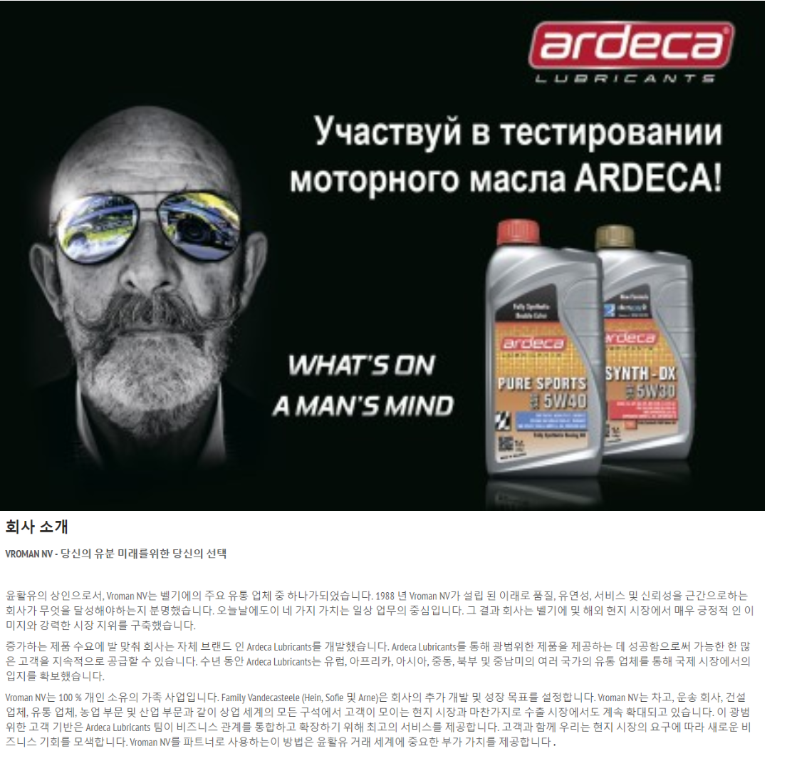 VROMAN NV의 또다른 자회사 아르데카 규격을 보면...