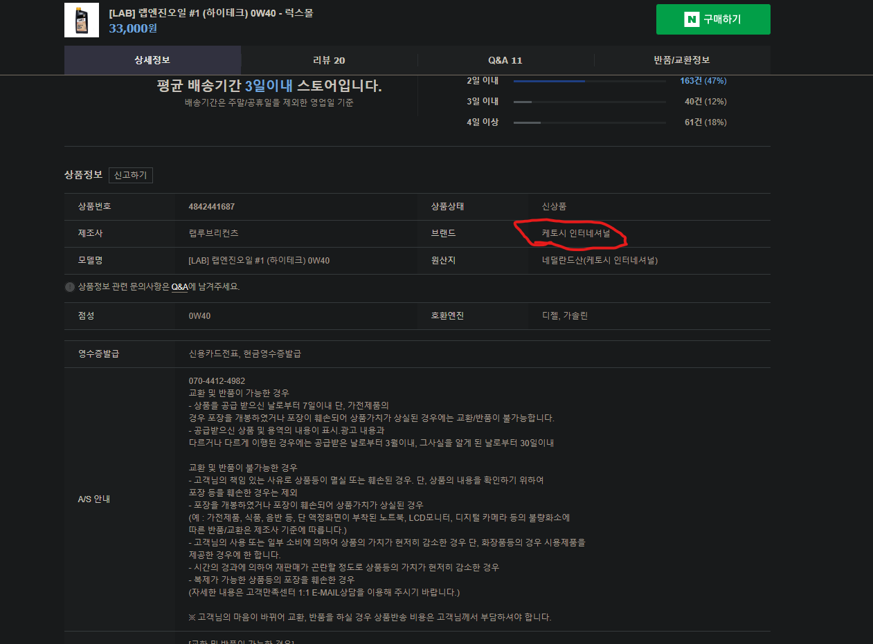 7. 나쁜 엔진오일이라고 말하는 것은 아니나 제품 표기와 홍보에 문제가 있습니다