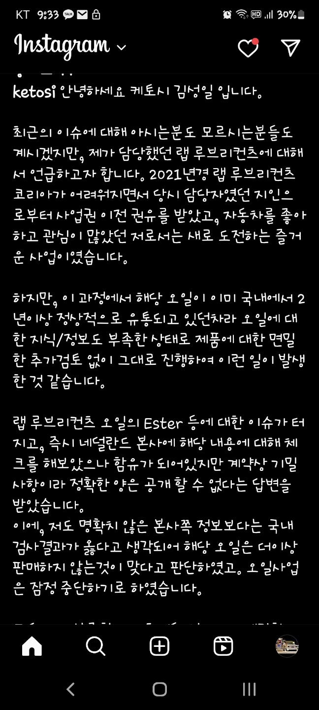 케토시님 인스타에 글이 올라왔습니다.
