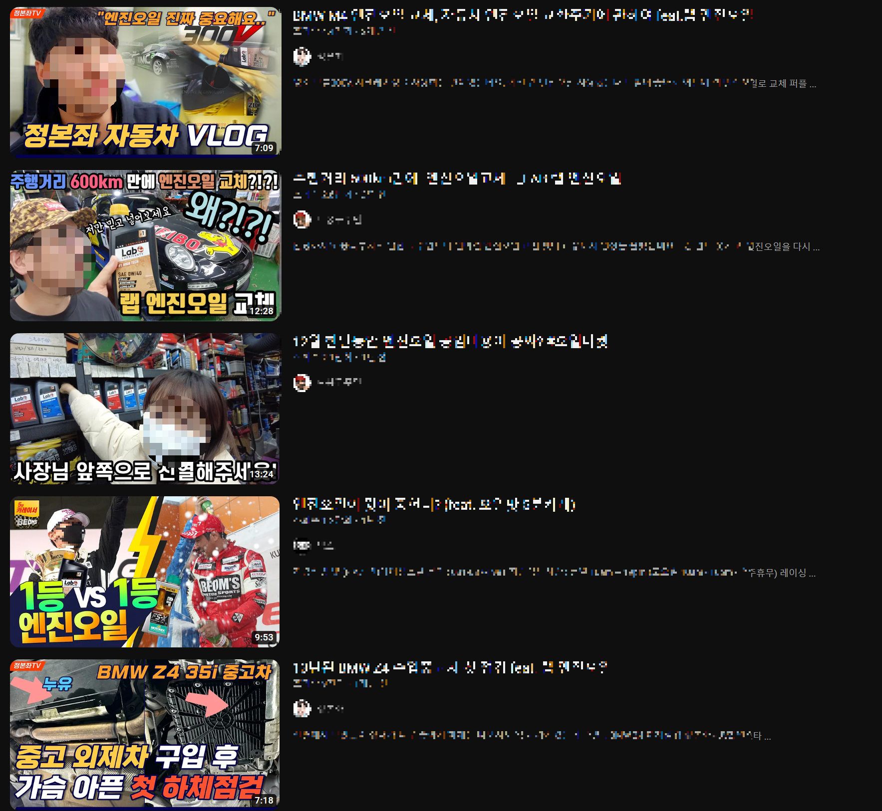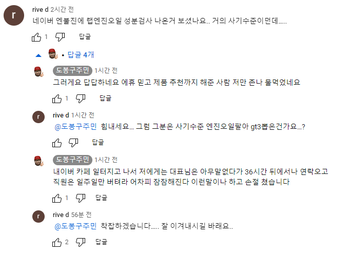 랩 엔진오일이라고 검색만 하더라도 많은 영상들이 나옵니다.