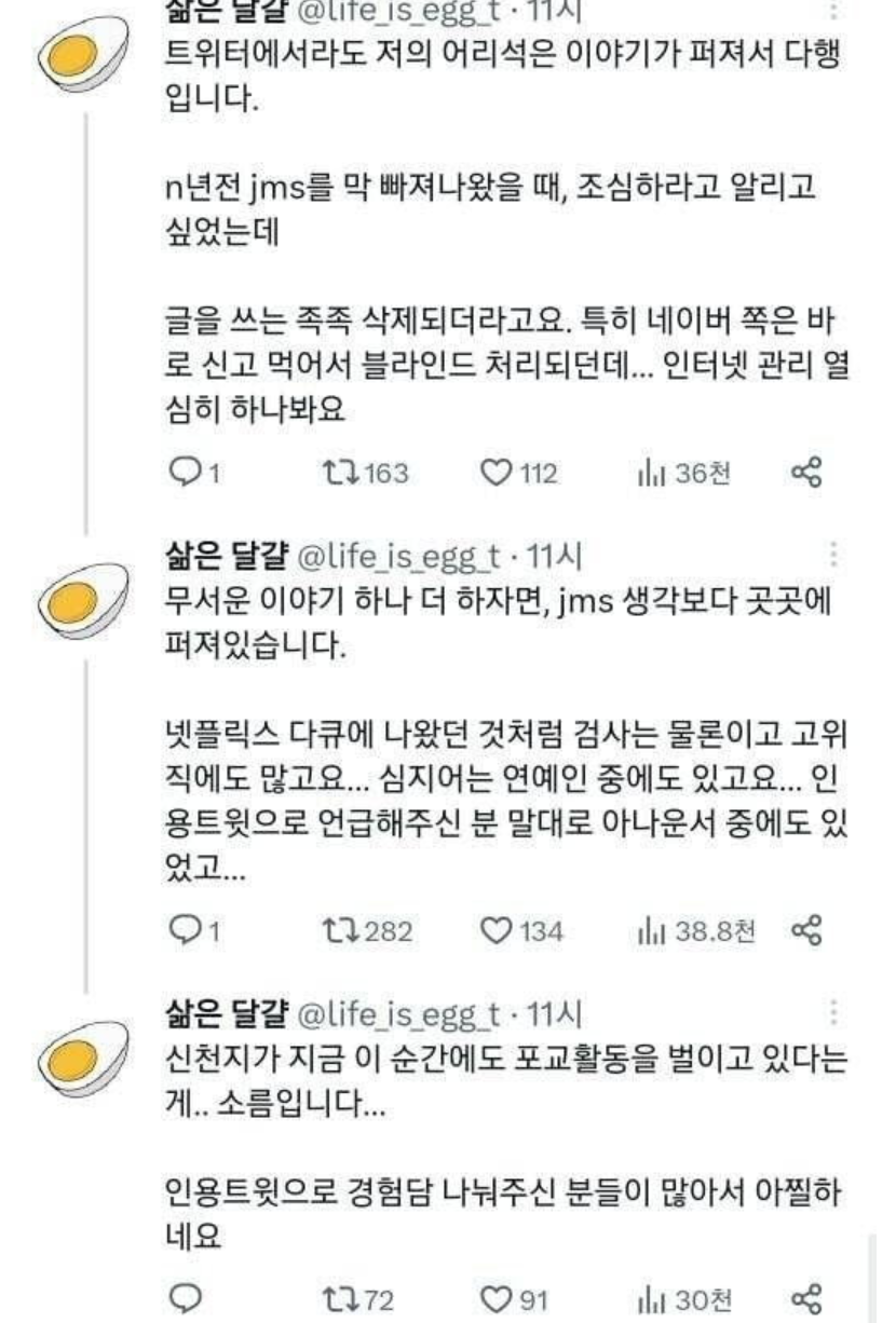 그런데 이렇게 피해자분들이 증언하고 교 탈퇴하고서 알리는 사람들이 넘쳐도 끄똑없는 이유가