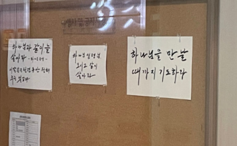 해당 글씨는 정명석의 글씨라고 알려지고 있으며 교회뿐만 아니라 빵집, 식당등에서도 사용하고 있다고 합니다.