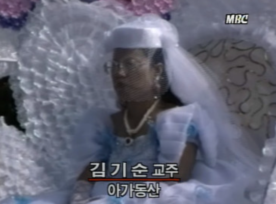 교주 김기순은 자신을 '아가야'라고 지칭하며 꽃가마를 타고 나타나거나 하얀 드레스를 입고 춤을 추거나 하는 등 비정상적인 행동을 하며 그의 기행이 발각되기 시작했습니다.