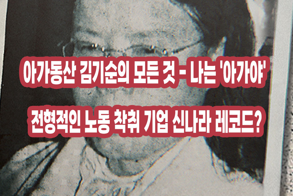 아가농장은 전형적인 노동착취형 플랜테이션 농장으로 농장관리, 장부관리, 의료관리, 학생관리, 세무관리 등 관리직을 놓고 철저하게 공동체 생활 및 공동작업으로 운영되어서 신도들은 매일 새벽 6시부터 밤 12시까지 낮에는 농장에서 일하고, 밤에는 공장에서 CD 및 테이프를 만들며 일하는 식으로 원치 않는 일을 하여 김기순의 배를 부르게 한 기업이며 사이비종교 입니다.