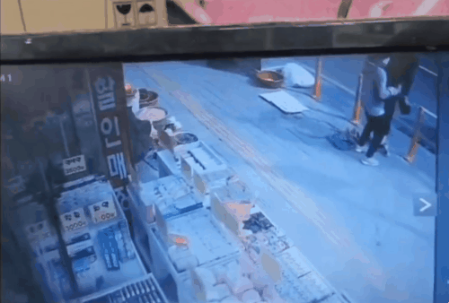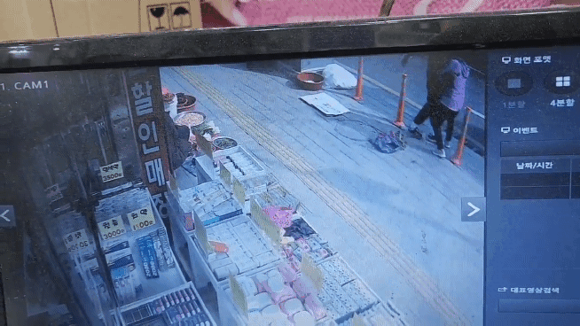 아무말 없이 노점상의 물건을 들고 가는데