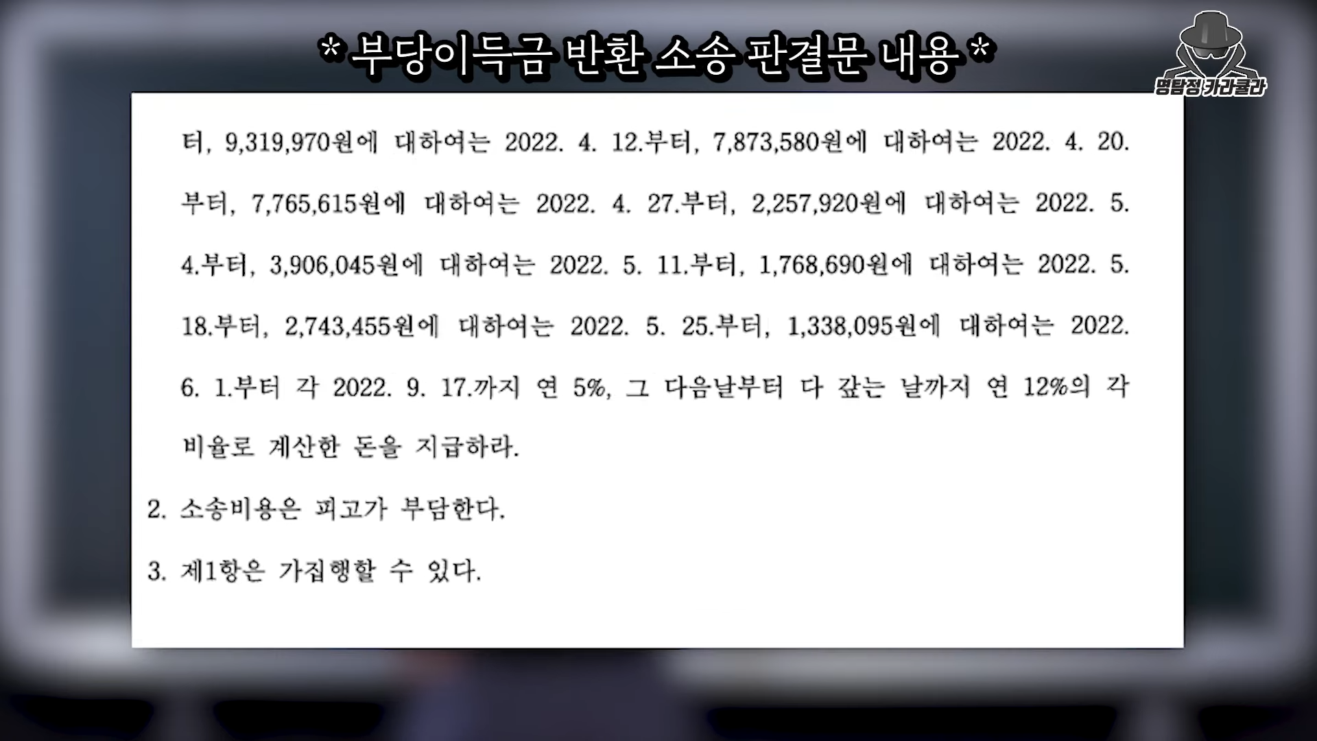 또한 가해자에게 소송을 건 부당이득금 반환 소송 역시 김아둥이 승소했으며