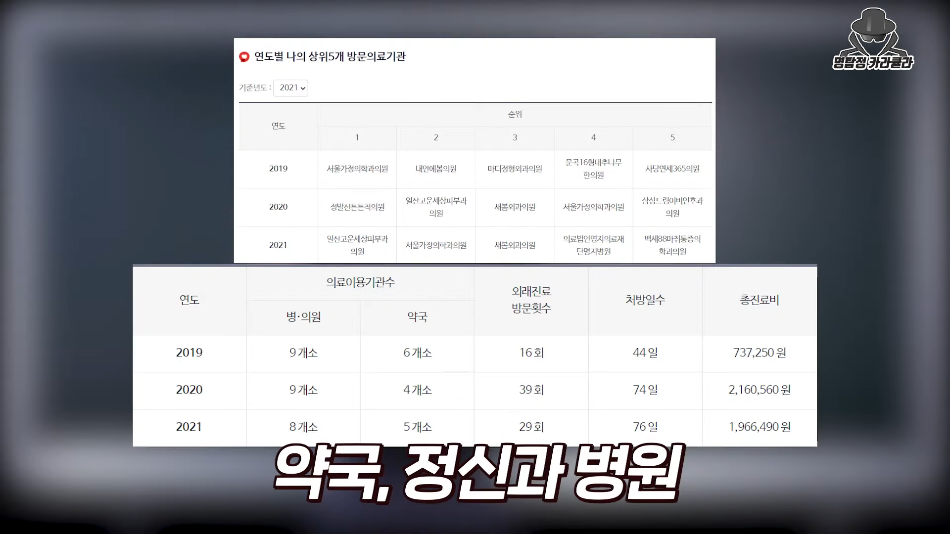 그리고 김아둥의 의료기록을 조회해보면 약국, 정신과 병원만 있을뿐 성형관련 의료 기록은 전혀 없습니다.