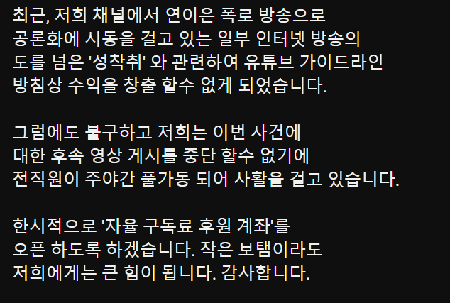 유튜브 카라큘라에서 또 엄청난 사건이 올라왔습니다. 제2의 n번방이라 불릴만큼 충격적인 성인BJ 성 착취 사건 입니다. 1년동안 음란물 제작 강요로 협박과 감금까지 당하며 성 노예로 살았던