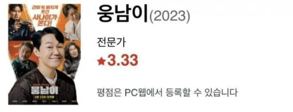 몇일전 영화리뷰 김시선이나 유명 리뷰 유튜버에 올라온 웅남이!