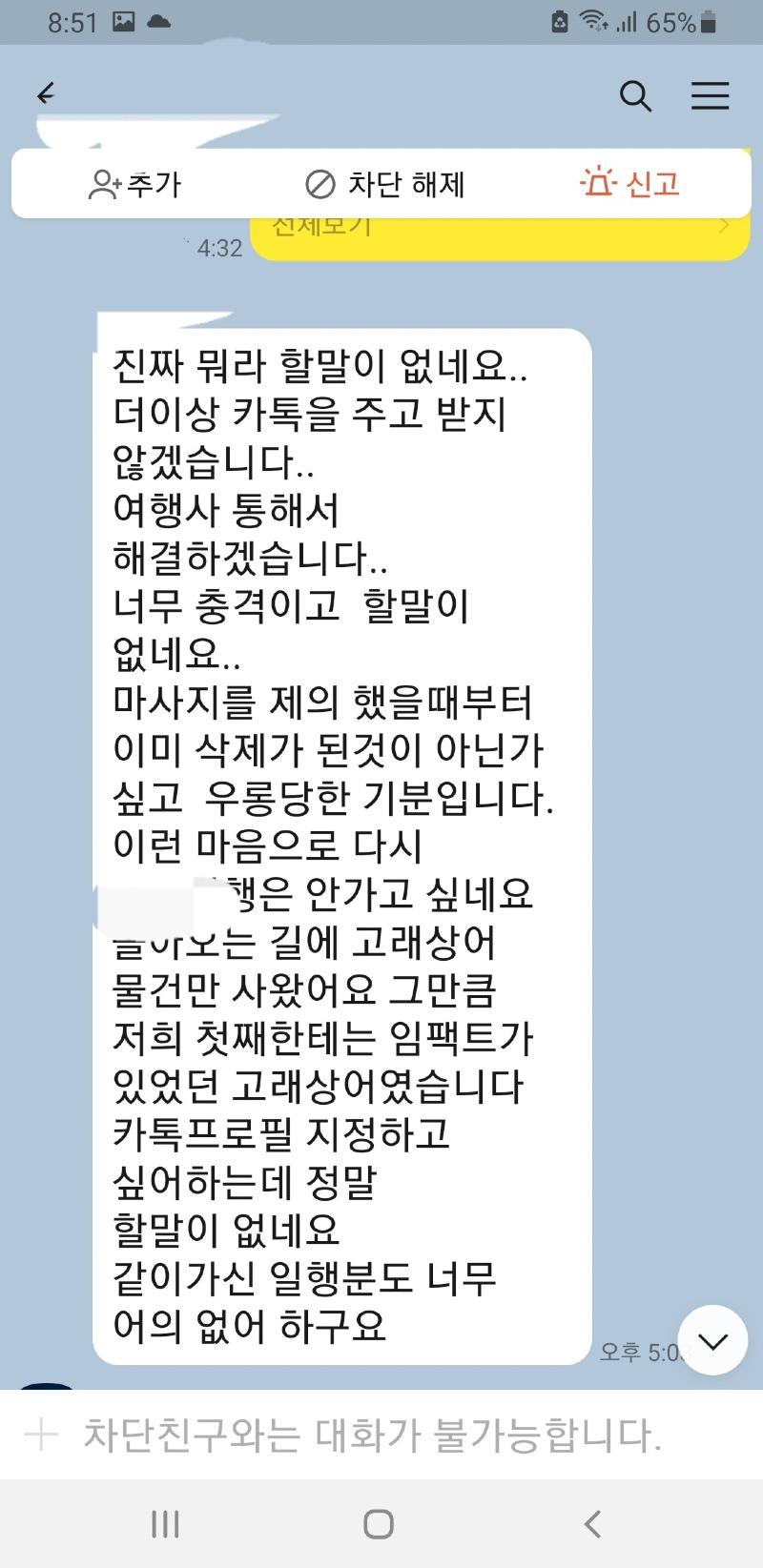투어비용 100% 환불을 요청했고, 기념촬영은 필수사항이 아닌 서비스 사항이고, 전체 파일이 아닌 일부 파일 손상이며 다른곳에서 찍은 사진은 받으셨기에 환불불가라고 했더니 이후 50%라도 환불해달라고 하는 손님...