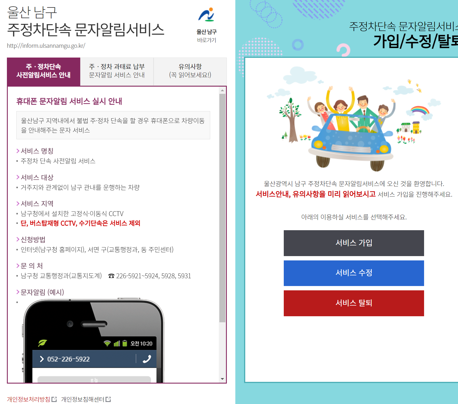 주차단속 CCTV로 단속이 될 경우 차주에게 문자가 오게 되는데