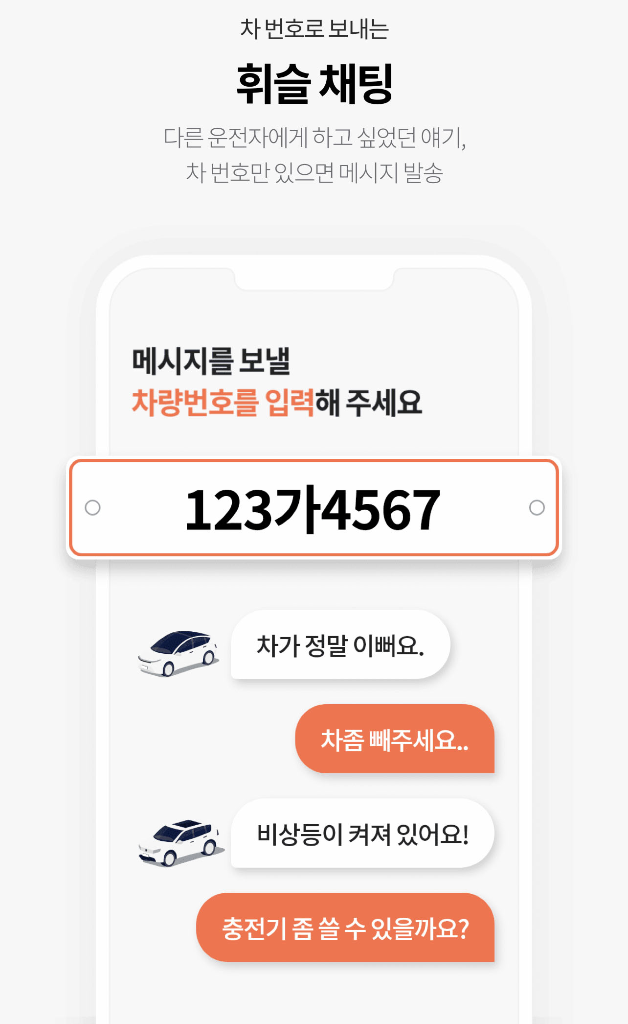 뿐만 아니라 휘슬을 사용하고 있는 차주라면 휴대폰번호가 아닌 차량번호를 입력해 메시지를 보낼수도 있다고 합니다.