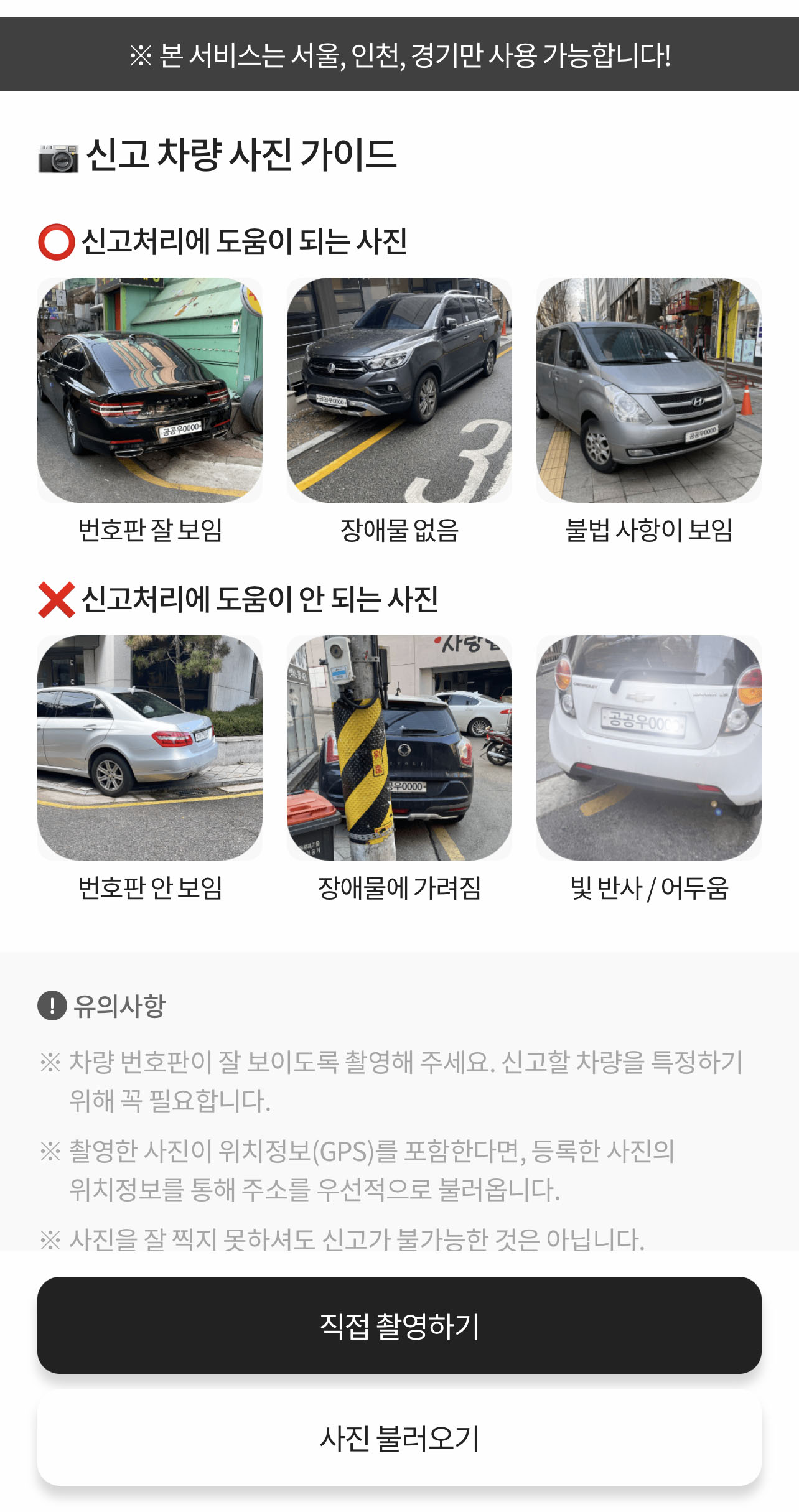 또 주정차 신고를 간편하게 할수있는 기능이 있습니다만