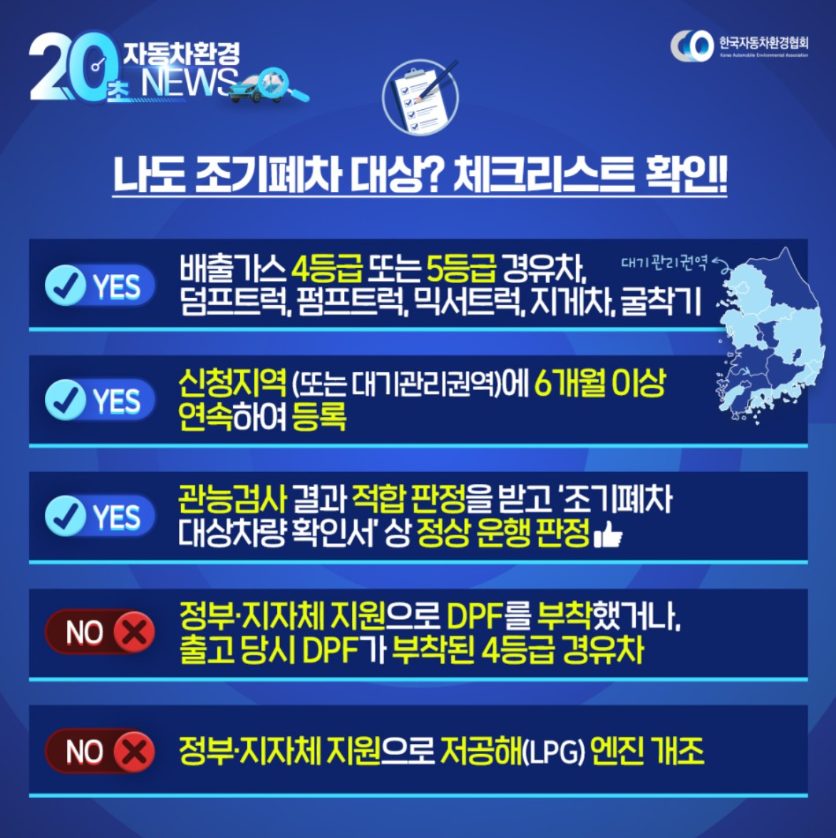 그리고 조기폐차의 조건 중 하나인 6개월 이상 대기관리권역에 등록되어야 된다는점!