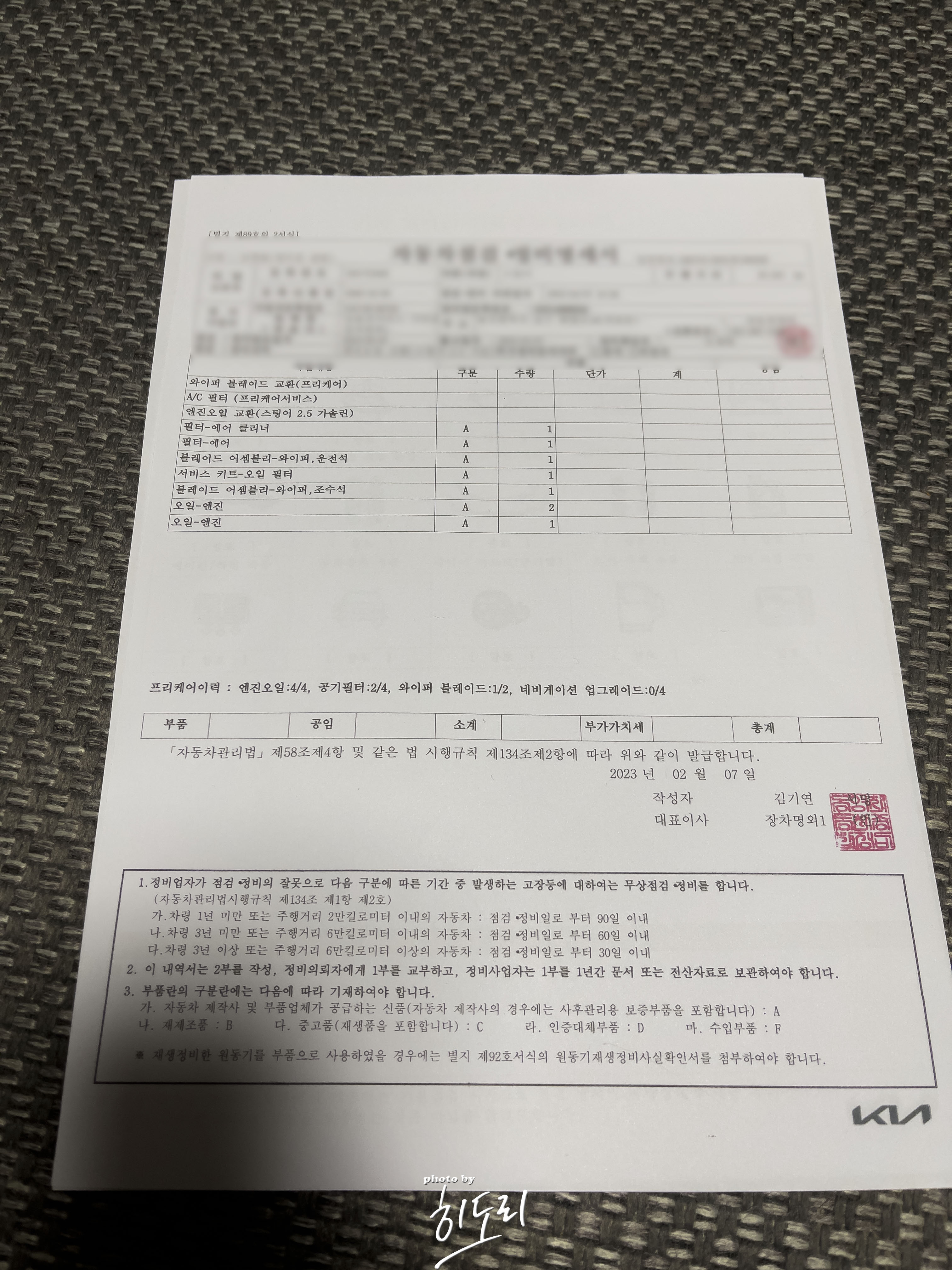 방문했는김에 마지막 엔진오일쿠폰과 에어컨필터, 와이퍼, 점검