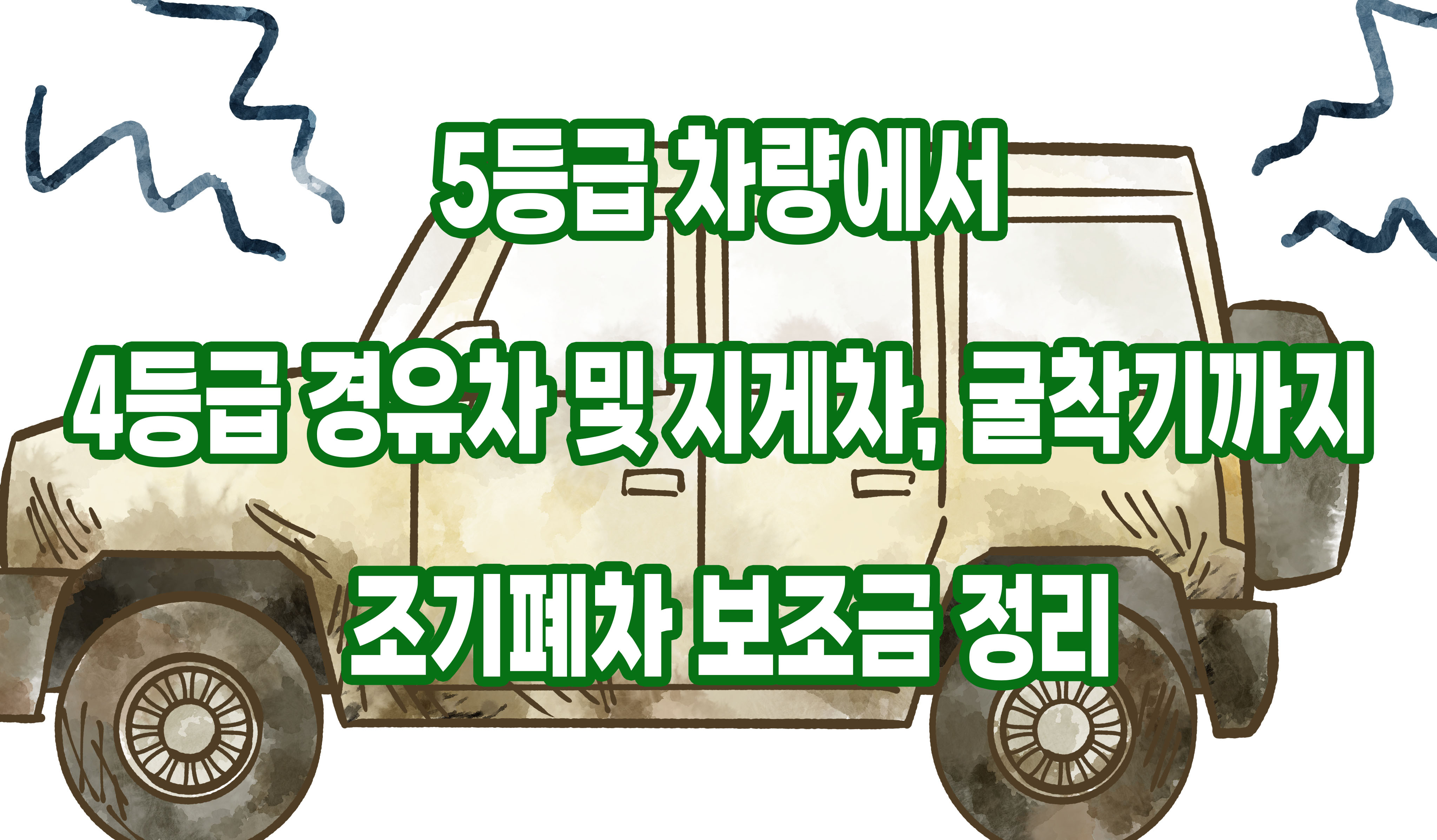 환경부는 2021년 2월부터 전국 지자체에서 기존 배출가스 5등급 차량에서 4등급 경유차 및 지게차, 굴착기까지 조기폐차 보조금 대상을 확대하겠다고 밝혔습니다.