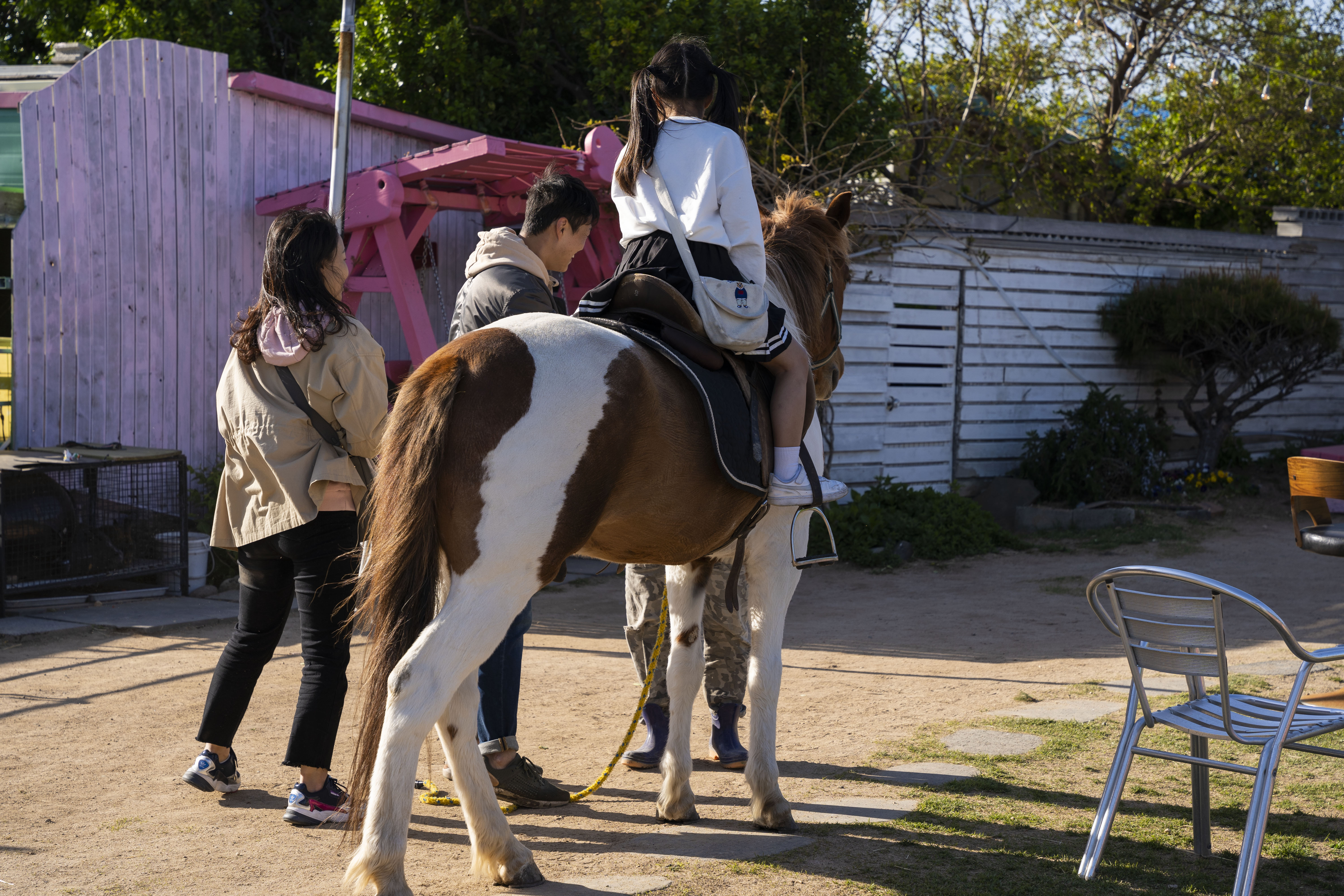 대왕암공원 해안둘레길 초화단지 가는길에는 작은 카페들과 음식점을 볼수가 있는데 한 카페에서는 말을 직접 타고 한바퀴 돌수 있는곳도 있답니다.