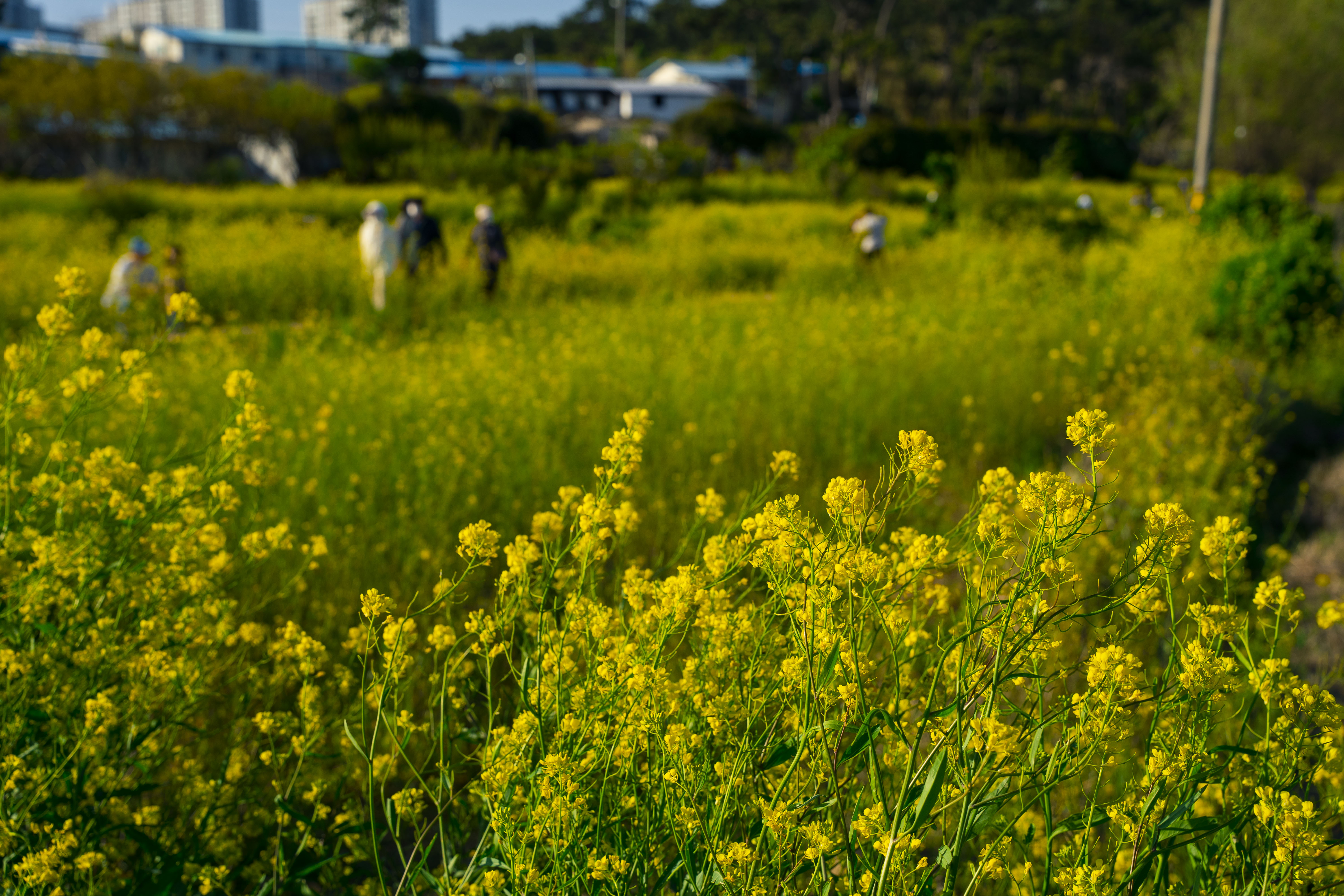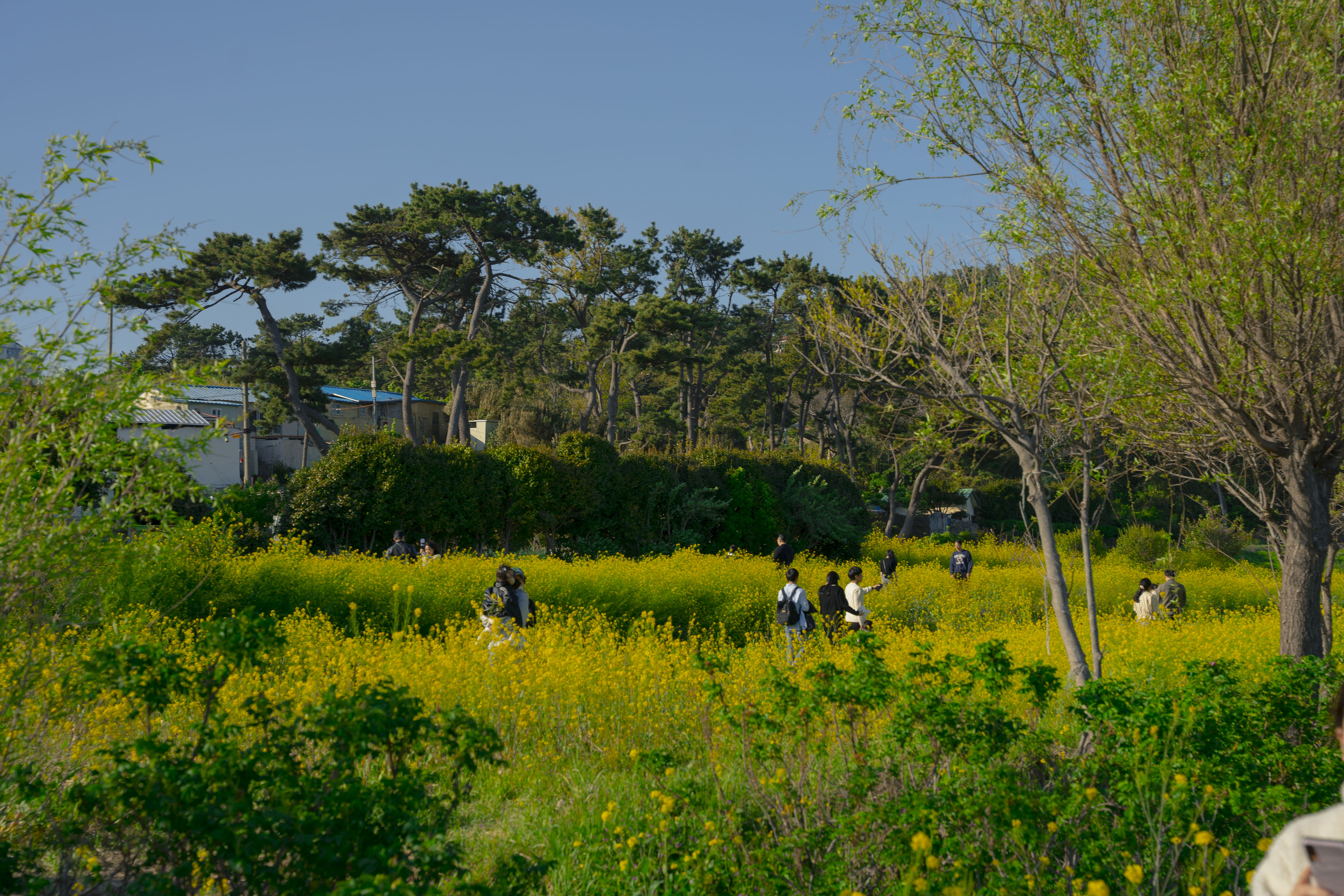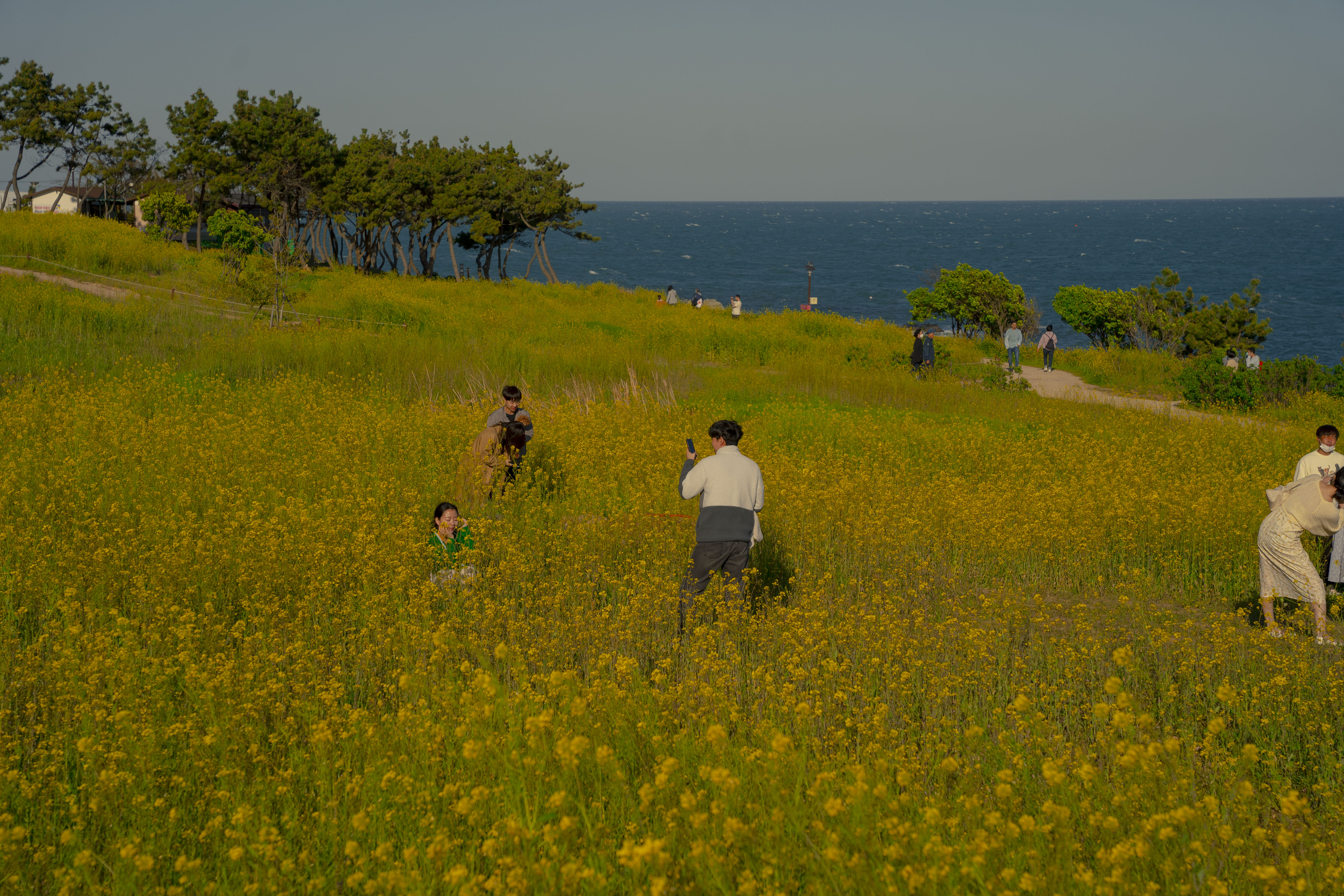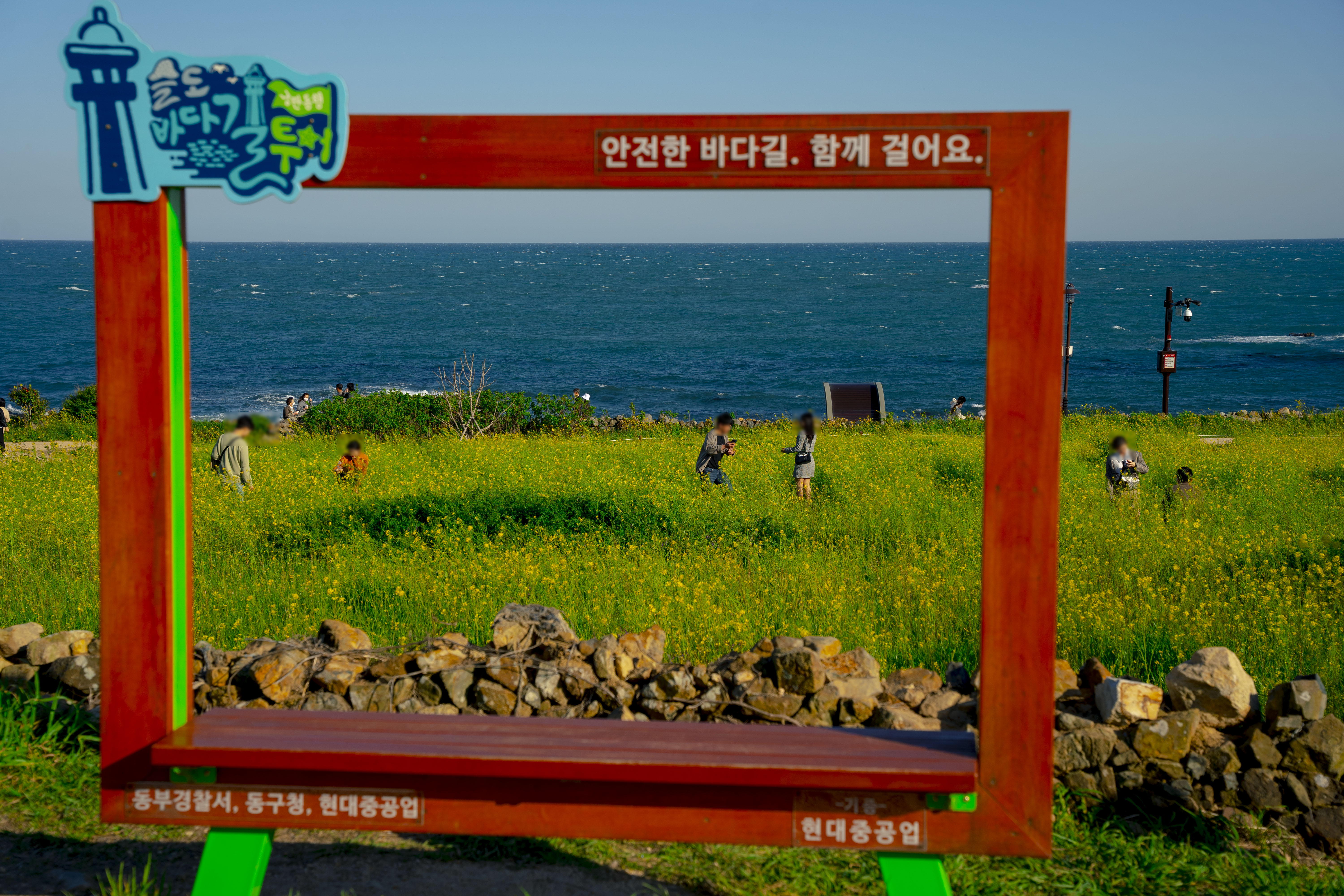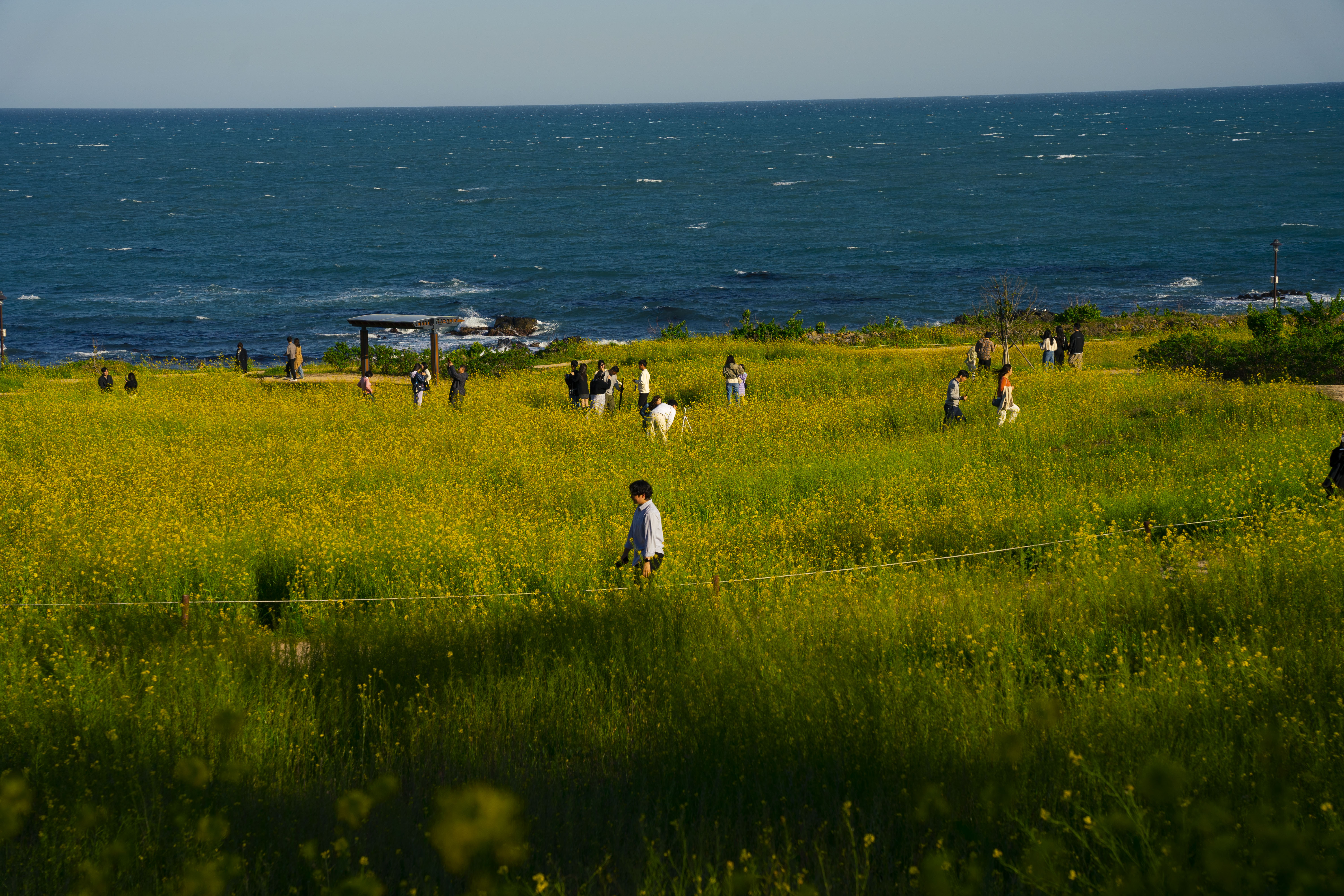 노란색으로 물든 유채꽃이 만개하여 동해에서 불어오는 시원한 바람과 함께 완연한 봄 정취를 전합니다. 이곳은 유채꽃이 가장 아름다운 곳 중 하나로, 매년 울산시민뿐만 아니라 국내외에서 많은 관광객들이 방문하는곳이기도 합니다.