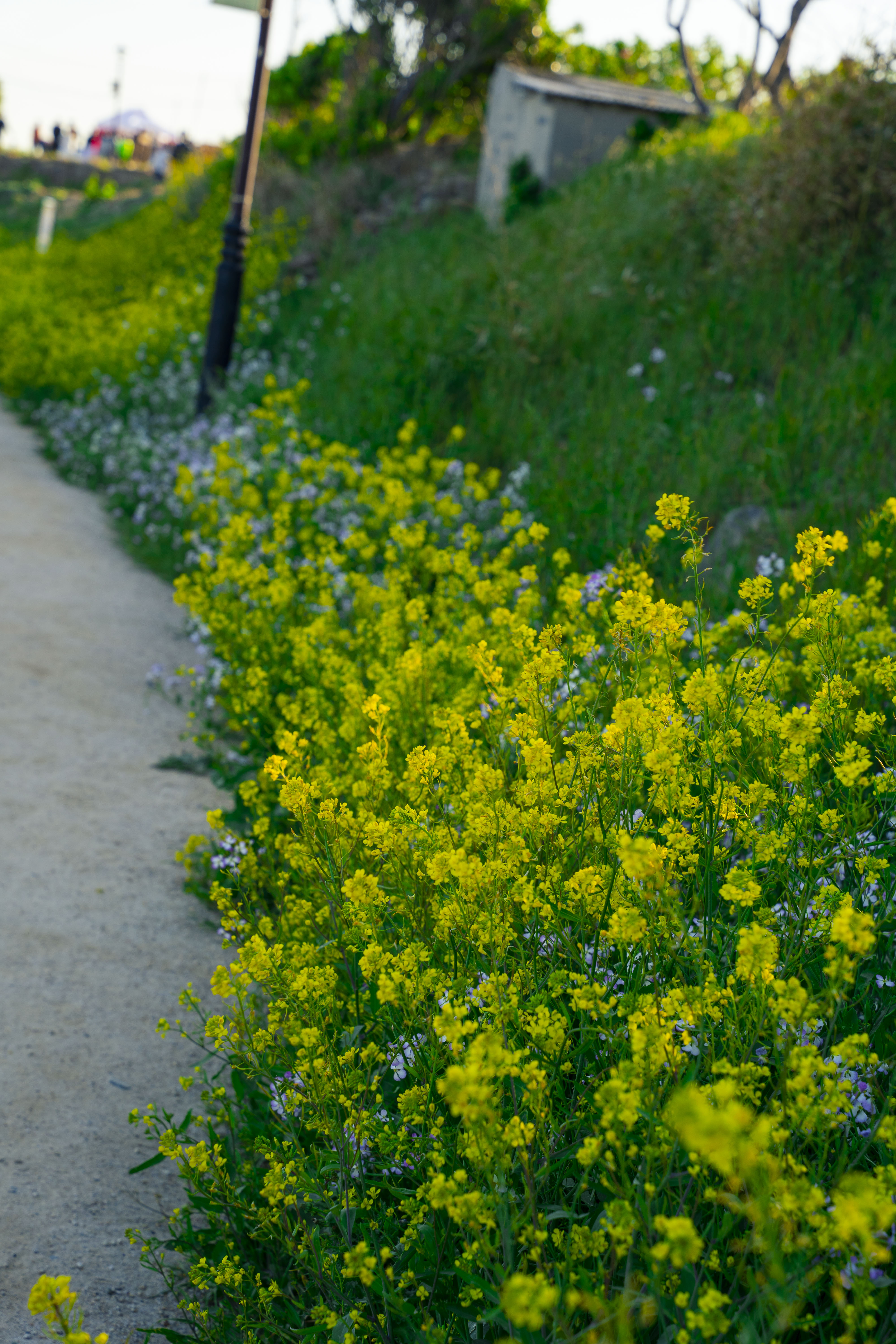 이곳은 주민들이 무단 경작하는 것을 막기 위해 유채 씨앗을 뿌린 곳인데, 2011년 부터 유채꽃이 피기 시작하면서 지금은 유채꽃의 꽃길이 이어져 관광명소로 자리 잡았습니다.