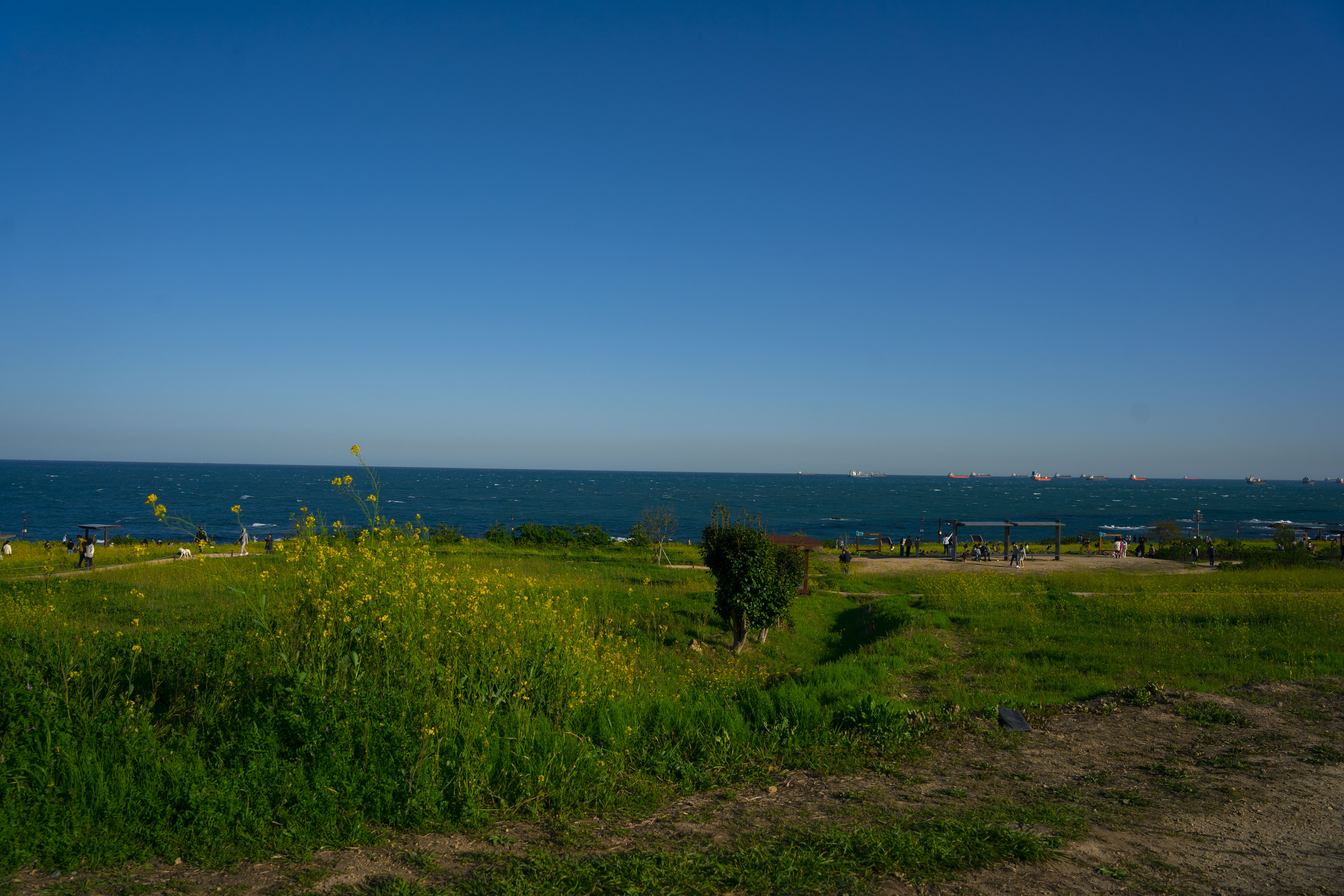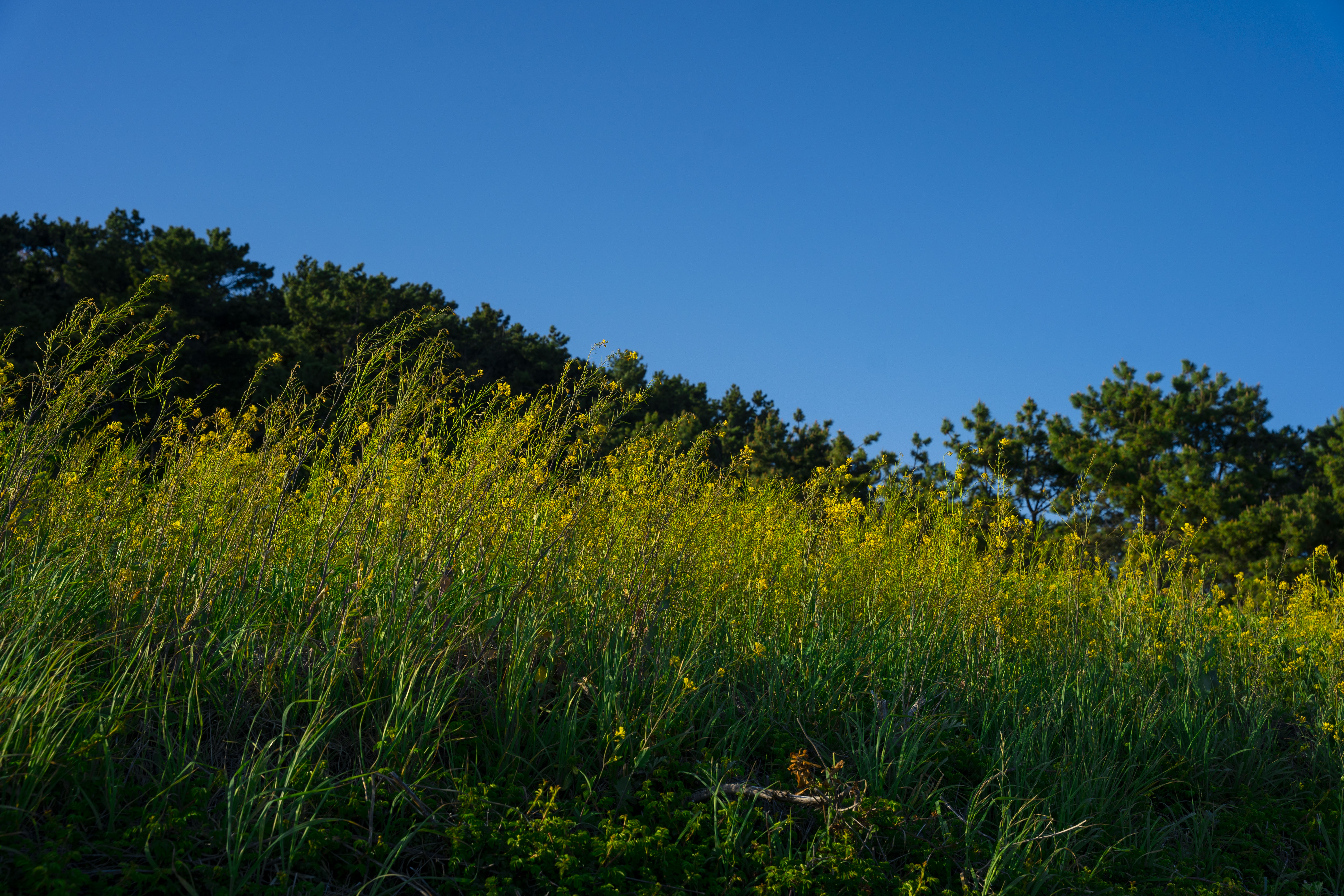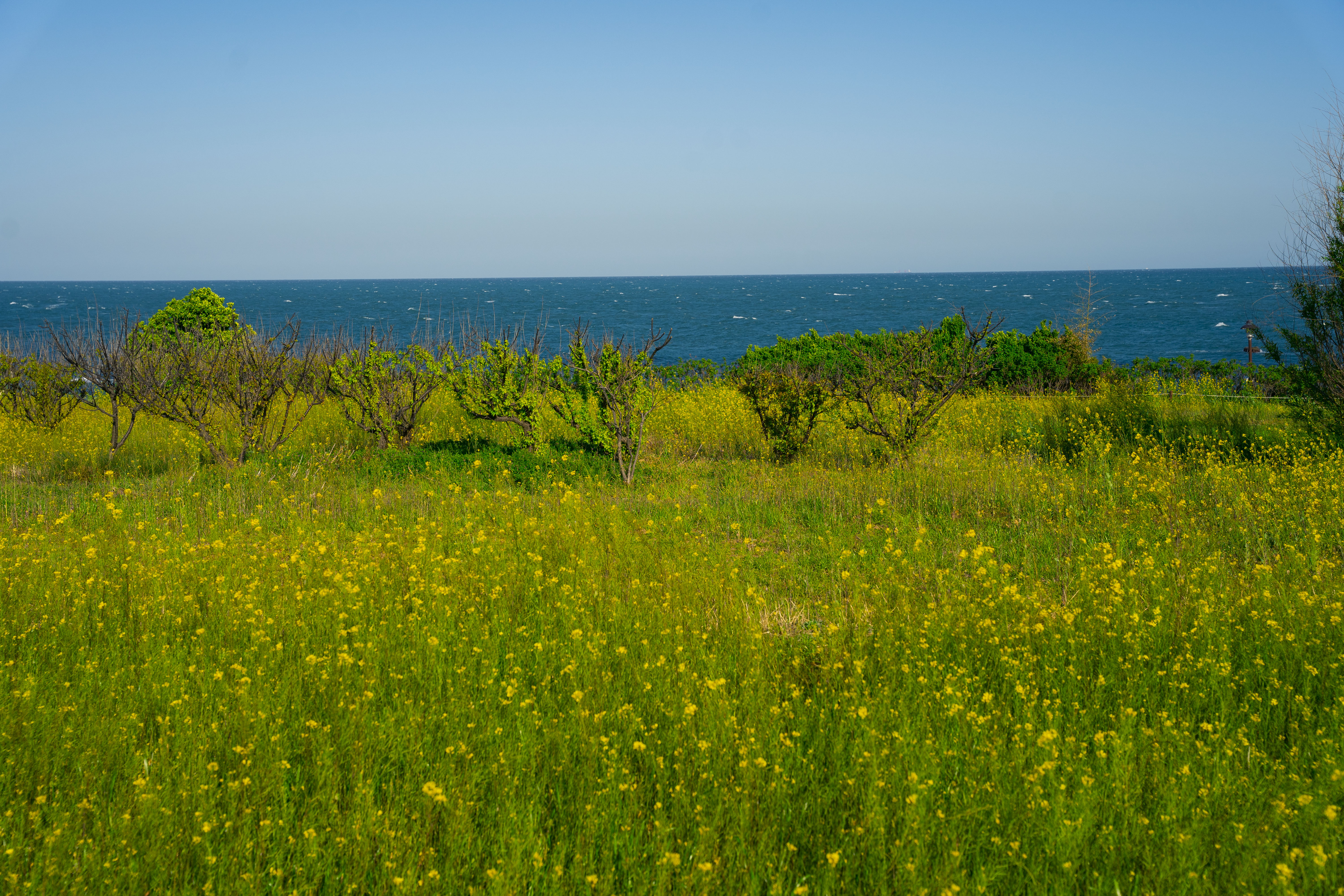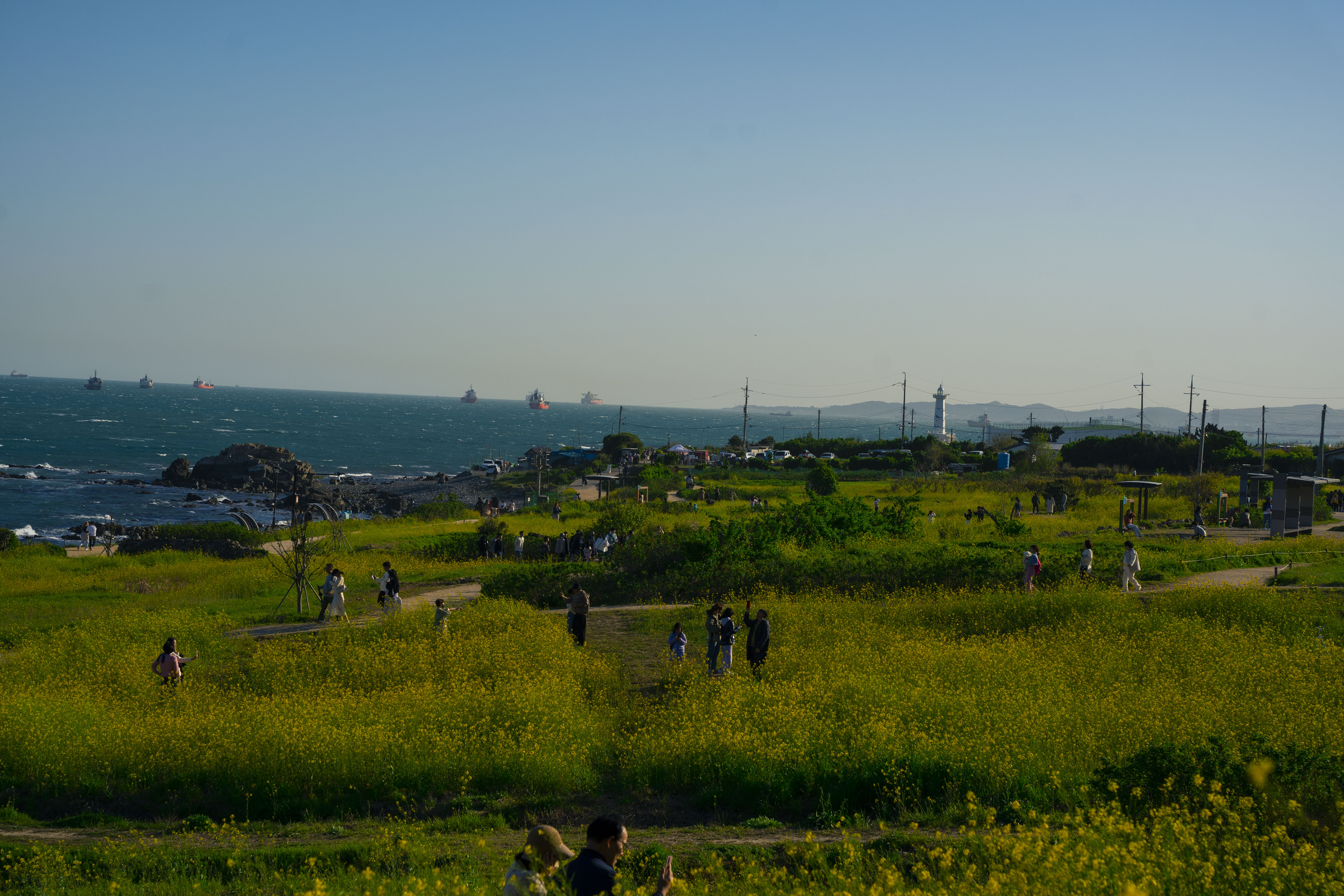 유채꽃은 바다 위에 피어나며 파란 하늘과 잘 어울리는 색상이죠.