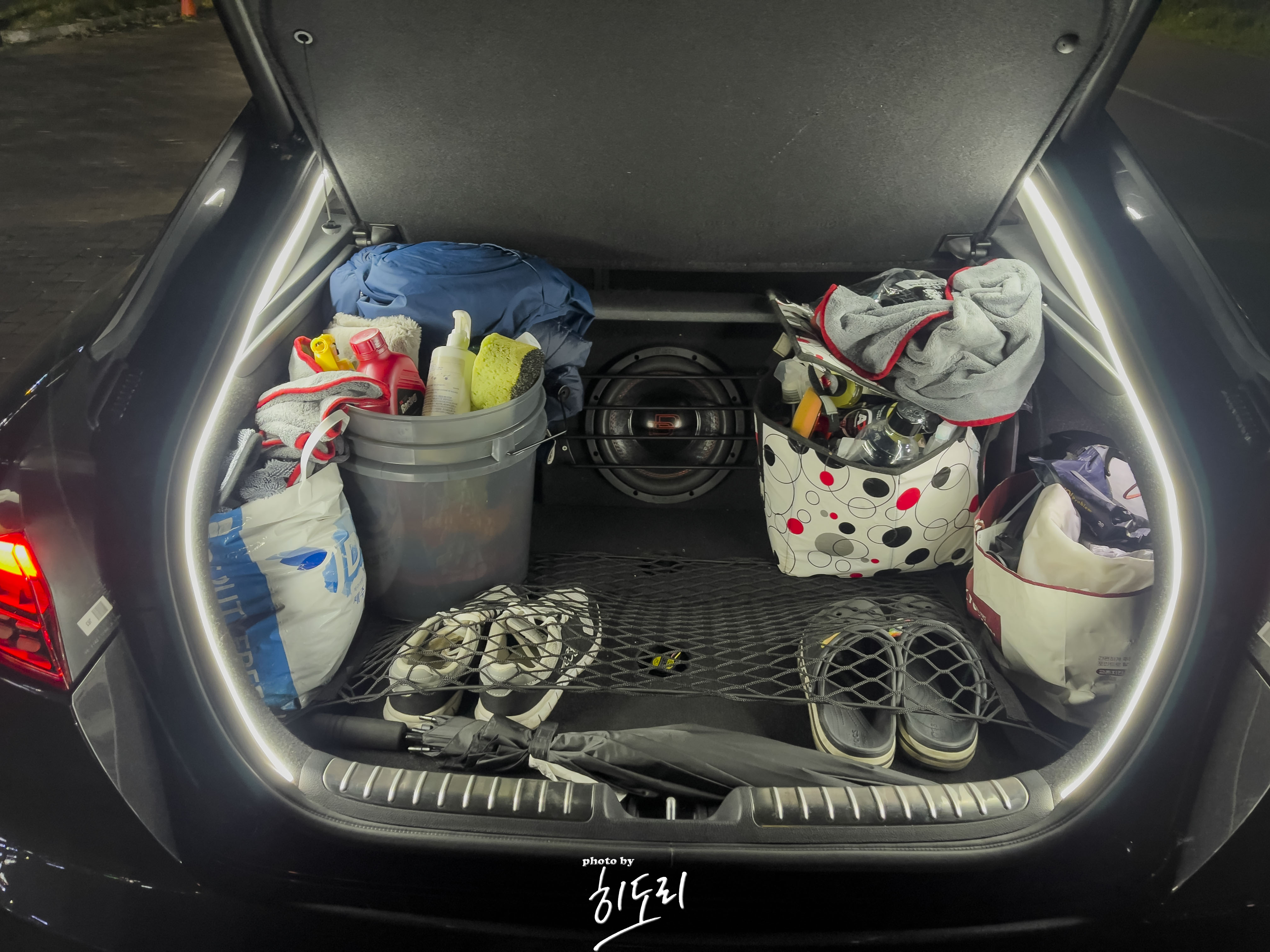 보시다 시피 우퍼와 각종 세차용품때문에 트렁크가 꽉 차 있는데....