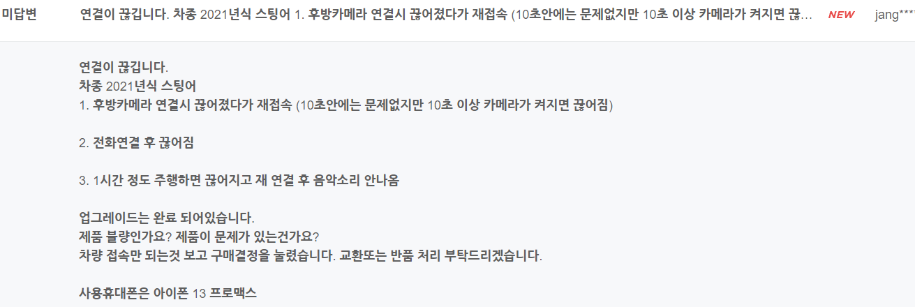 스팅어와 코나는 동일한 증상이고 싼타페는 1시간도 주행을 못해서 끊어짐 현상이 없었습니다.
