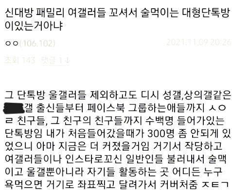 그녀의 우울증의 원인 중 하나가 신대방팸의 잔인한 행위였던것을 알려지고 있습니다.