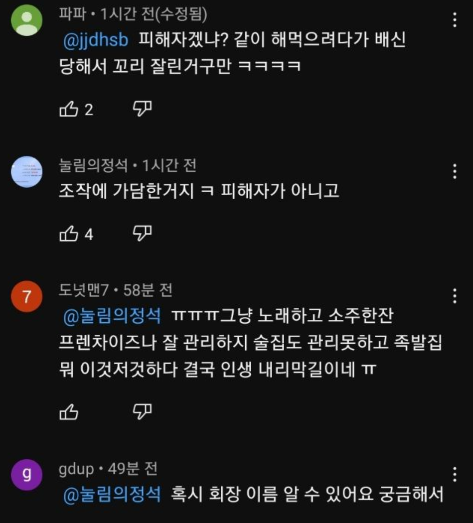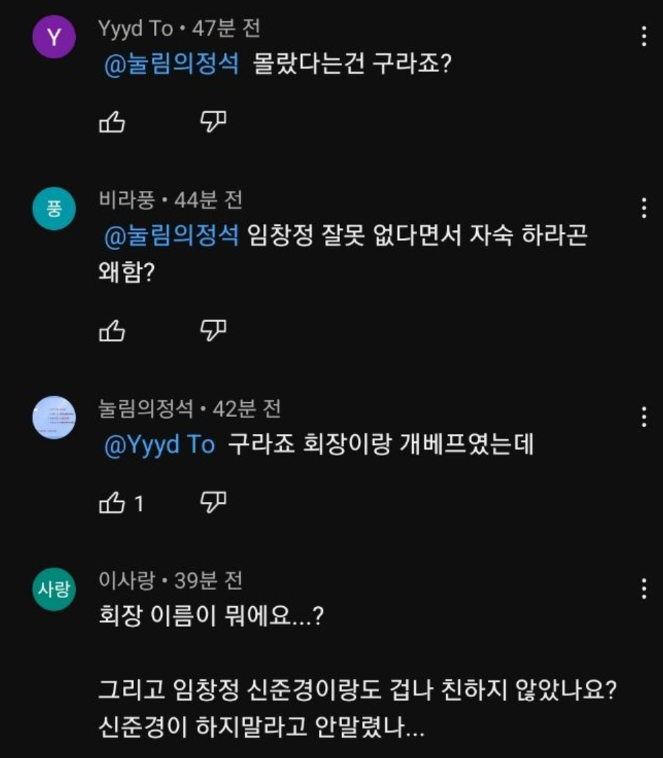 해당 댓글들에 여러분의 생각은 어떤가요?