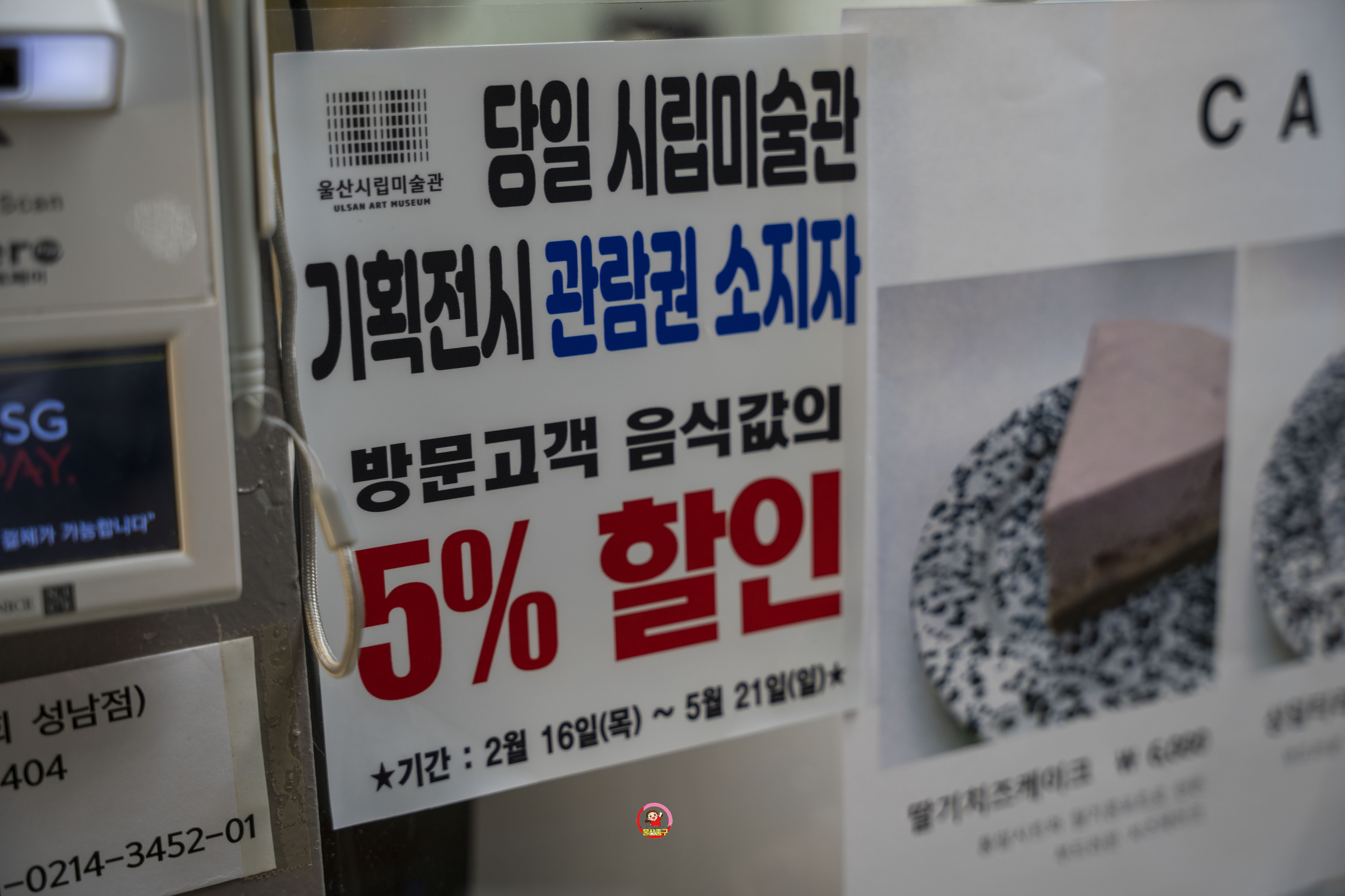 만약 시립미술관을 방문하셨다면 5%할인을 받아 음식을 주문할 수가 있답니다.