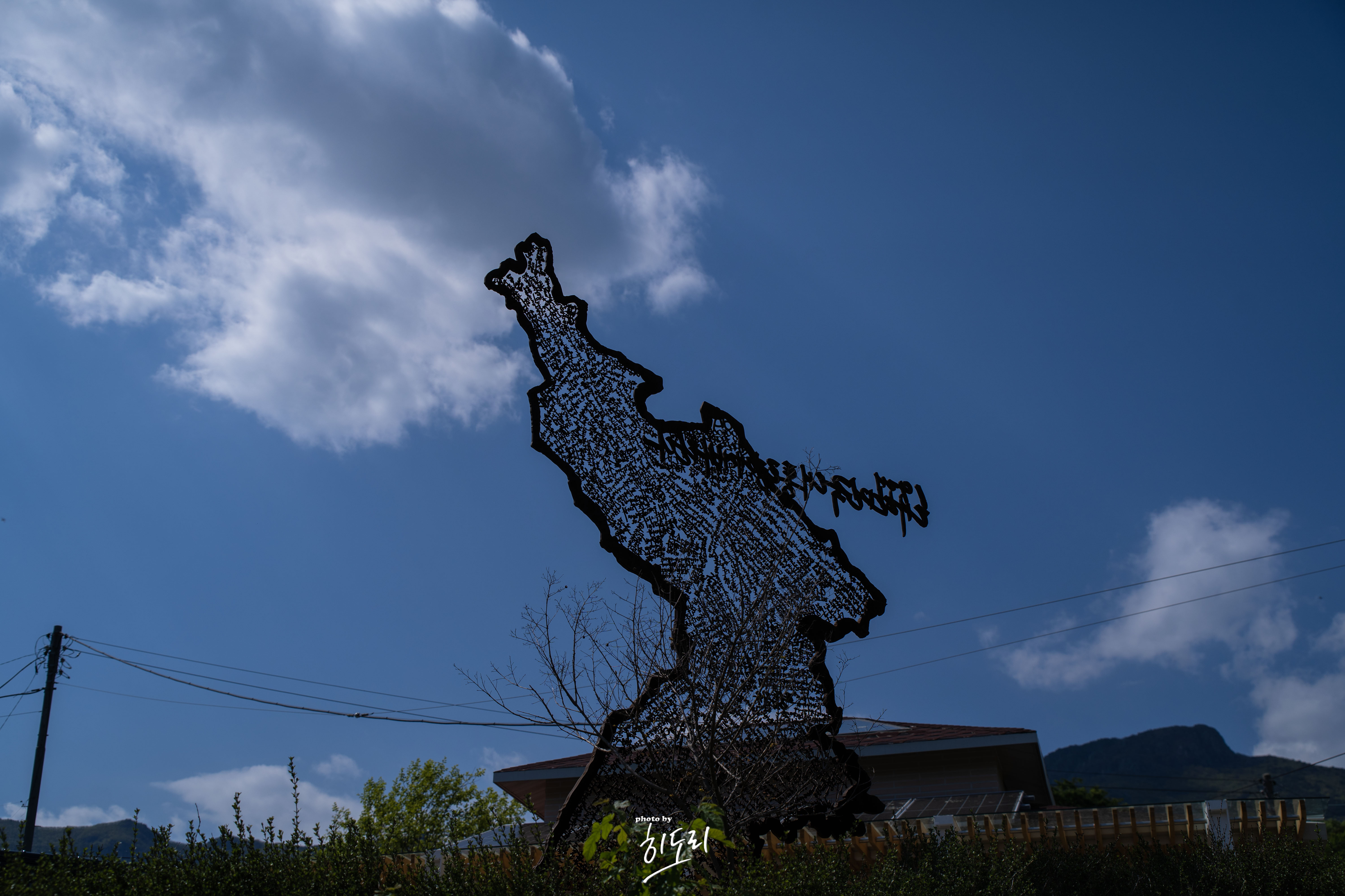 라는 글씨와 한반도에 빼곡히 적혀져 있는 글씨들...