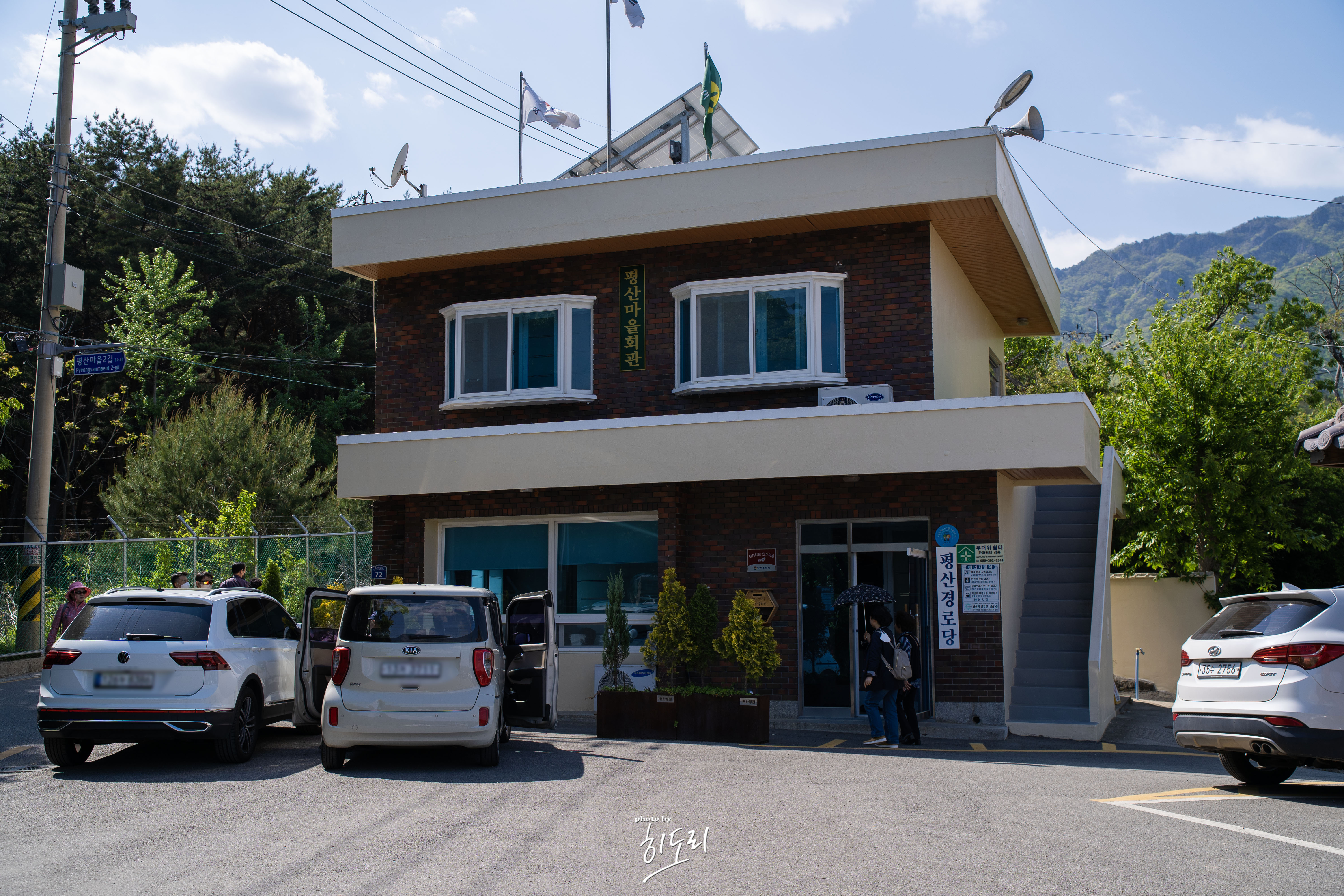 조금 더 편하고자 평산마을회관까지 들어와서 불법주차가 되어 있는데 버스가 나가기도 힘들고 사람들이 지나가기에도 불편합니다.